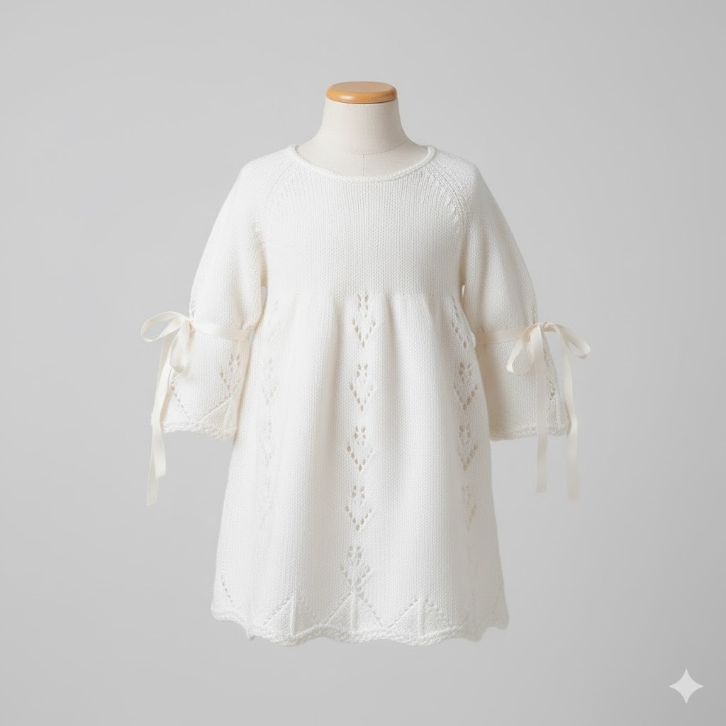 Модель: Детское платье/туника с ажурными дорожками и лентами.