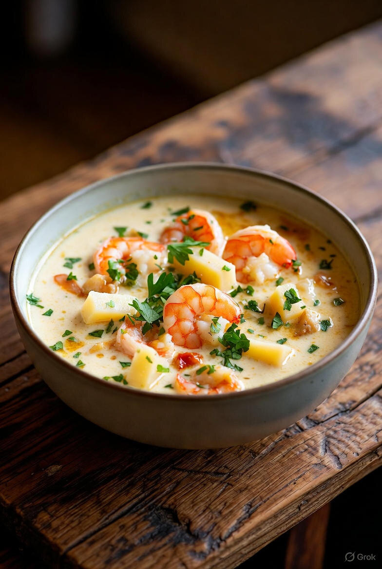 Ах, дорогие читатели, если вы когда-нибудь задумывались, как превратить обычный ужин в сцену из зомби-апокалипсиса, где ваша вторая половинка превращается в рычащее существо, готовое отгрызть вам руку за попытку приблизиться к кастрюле, то этот рецепт сырного супа с креветками — именно то, что доктор прописал, если доктор — это серийный убийца с кулинарными наклонностями. Представьте: моя жена, обычно такая милая, хватает ложку и ныряет прямо в кастрюлю, рыча на меня, словно я вор, пытающийся украсть её добычу, и в её глазах мелькает что-то первобытное, как будто она вспоминает, как наши предки ели мамонтов, не дожидаясь тарелок. Этот суп не просто еда — это катализатор для чёрного юмора в вашей семейной жизни, где каждый глоток может стать последним для вашего брака, если вы не поделитесь вовремя. Но давайте перейдём к делу, пока моя жена не услышала, как я печатаю, и не начала рычать снова, намекая, что следующий суп будет из моих костей.