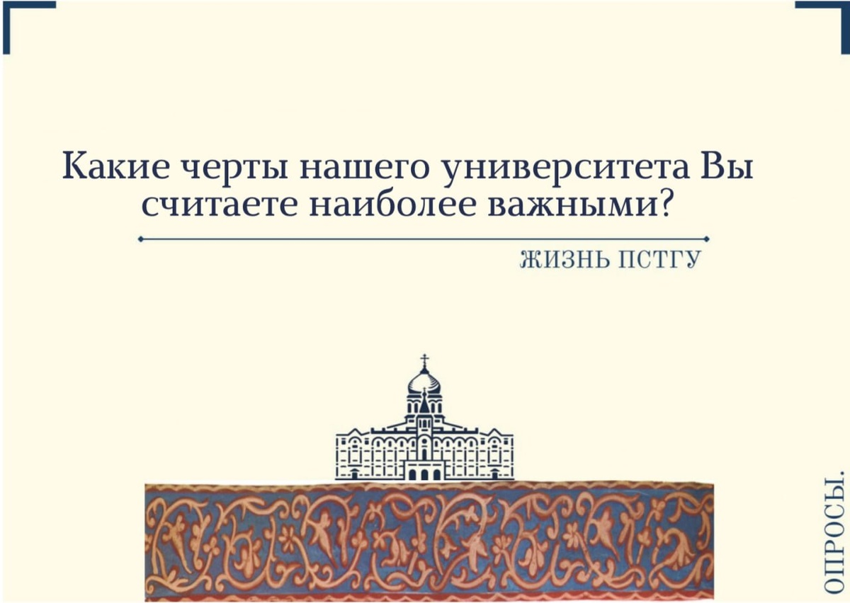 #ПСТГУ_опрос Наш университет имеет ряд важных преимуществ, благодаря которым обучение и работа в нем становятся продуктивными и привлекательными. Эти особенности ПСТГУ формируют его уникальный образ и сущностное наполнение.