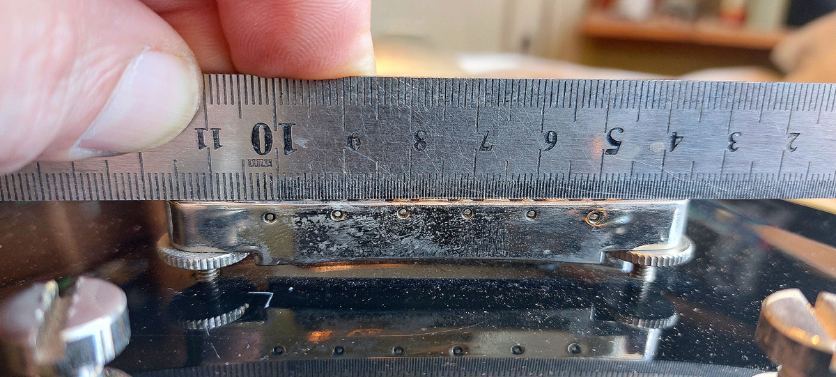Жил-был, при этом здравствовал Les Paul или какая-нибудь его реплика. И вот день ото дня струна "соль" и "ре" стали призвякивать об лады. Чем дальше, тем больше. Не спешите в такой ситуации отпускать анкер или, тем более, нести гитару шлифовать лады. Приложите линейку к основанию бриджа, на которое опираются подвижные сегменты. На фото поста показана деформация этой опоры силой давления струн. В данном случае, как вы видите, несущая планка просела на целый миллиметр по её центру (опоры струн "соль" и "ре"). Для хорошо налаженной гитары изменение высоты струны на 1мм — изменение весьма значительное. Такое происходит и с бюджетными и с оригинальными бриджами даже при толщине струн 0.9 - 46. разница только в скорости деформации. Решений проблемы три. 1-я конструктивная и простая — новый бридж. 2. Если гитара такая, что на неё и небольших денег потратить жалко, берите в руки надфиль и уменьшайте высоту крайних в бридже струн, после чего, увеличьте общую высоту бриджа. Деформированное осно