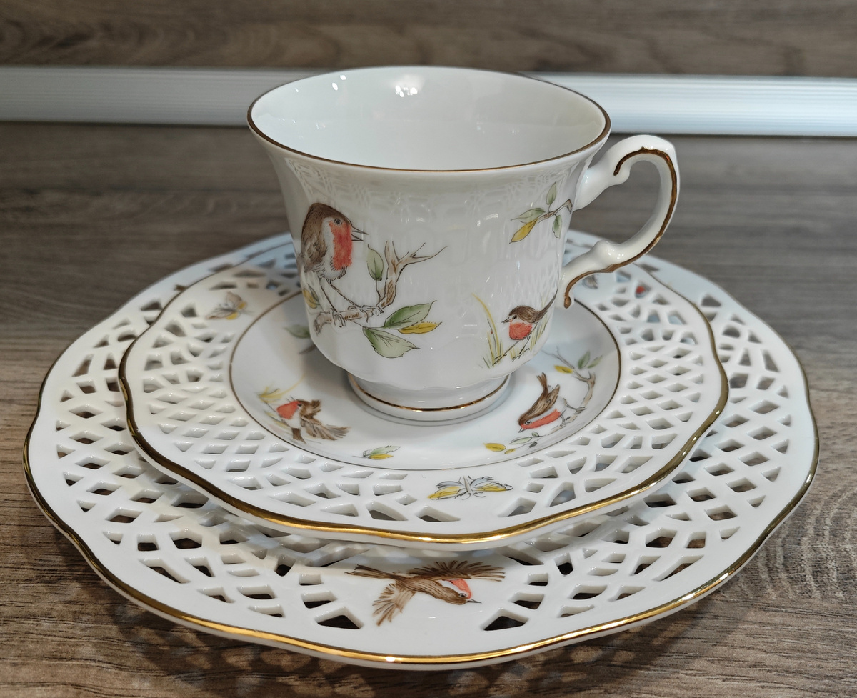 Сегодня я расскажу вам про свою самую дорогую фарфоровую покупку на авито. У меня не было никаких шансов устоять. Думаю, если бы цена была еще выше, то и это не изменило бы ситуацию. Думала ли я, когда только-только увлеклась винтажной посудой, что потрачу 3000р на кружечку? Боже упаси, нет конечно😄 Но как увидела... Так всё... Жить без нее не могу!😄 Мне нравится всё, что ранее попало ко мне в руки. Вся посуда радует и используется. Но если про все остальное я могу сказать, что возможно когда-нибудь продам, если надоест, то про новенькую чашечку я твёрдо знаю - она со мной навсегда! Все мы разные, у всех свой вкус и свое видение прекрасного. Возможно кому-то мои чувства к новой покупке покажутся странными, но мне она попала в самое сердечко. Ну хватит тянуть, показываю! Это чайное трио. С ПТИЧКАМИ!!! И ПРОРЕЗНЫМ ФАРФОРОМ!!! Я раньше даже не знала, что такой есть! А уж Зарянка... Вы же знаете мою любовь к птицам. Ну какие у меня были шансы удержаться? Правильно, никаких!😄