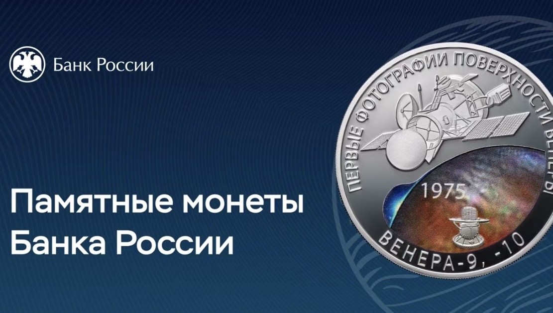 Банк России 17 ноября 2025 года выпускает в обращение памятную серебряную монету номиналом 3 рубля «50-летие мягкой посадки спускаемых аппаратов на Венеру и получения панорамных изображений поверхности Венеры» серии «Космос». Серебряная монета номиналом 3 рубля (масса драгоценного металла в чистоте – 31,1 г, проба сплава – 925) имеет форму круга диаметром 39,0 мм. С лицевой и оборотной сторон монеты по окружности имеется выступающий кант. В 1975 году космические аппараты «Венера-9» и «Венера-10» совершили посадку на вторую по удаленности от Солнца планету и передали на Землю первые фотографии с изображением ее поверхности. Пресс-служба Банка России