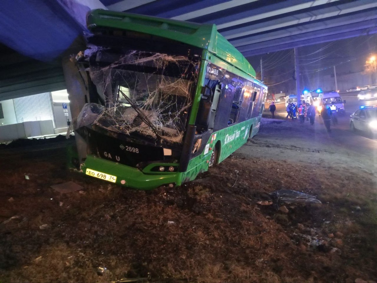 В Челябинске автобус врезался в опору моста, есть пострадавшие
