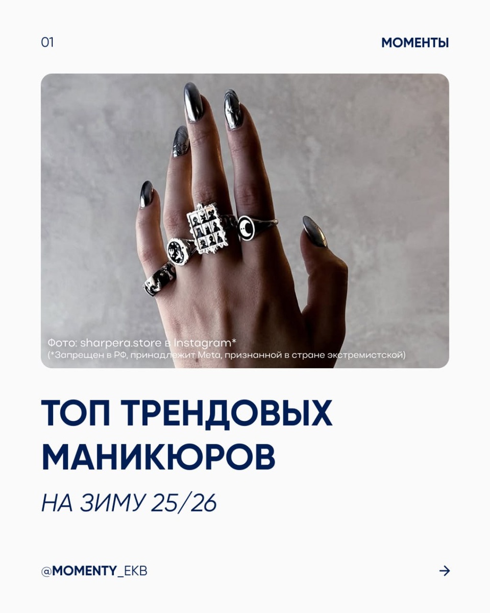 Зимой должны сиять не только снежинки на солнце, но и ногти. В карточках рассказываем, какой маникюр будет в тренде в холодный сезон — самое время записаться к своем мастеру и выбрать дизайн на новогодние праздники💅 #Моменты_стиль Подписаться 🔸 Обсудить