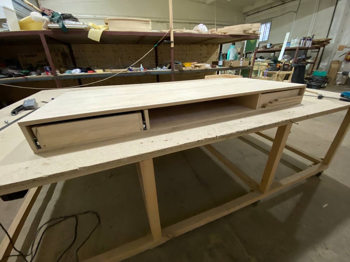 Работа над столом движется вперёд — медленно, но с той самой внимательностью и тишиной, которые я люблю в каждом проекте. Когда дерево откликается на инструмент, а детали начинают соединяться так, будто всегда принадлежали друг другу. Столешница уже почти готова: детали скручены, склеены, форма начинает вырисовываться в цельный, уверенный силуэт. Осталось установить верхнюю часть, встроить беспроводную зарядку, затем всё тщательно прошлифовать и покрыть маслом — чтобы дерево раскрылось и задышало глубже. Раньше планировал сделать потайной отсек в одном из ящиков, но в какой-то момент понял, что это лишнее. Стол и так получился со своим характером, и в нём нет ничего, что нужно прятать. Иногда лучшим решением становится отказ от идеи. В этом тоже есть честность. Я также выбрал ножки — металлические, чёрного цвета. Строгие, минималистичные, они создадут устойчивый визуальный ритм и подчеркнут естественную текстуру дерева. Кажется, этот контраст модерна и тепла будет смотреться очень гарм