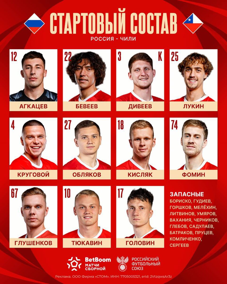 Мингиян Бевеев — в старте сборной России на матч с Чили 🇷🇺