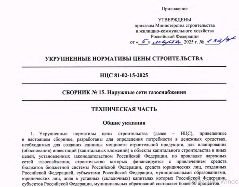 Применение укрупненных нормативов цены строительства (НЦС) • Рекомендуется учитывать функциональное назначение, конструктивные и мощностные характеристики объекта. • Необходимо использовать документы из ФРСН, включая Методику и Сборник НЦС 81-02-15-2025. Расчет стоимости строительства • Производится с учетом положений технической части и Отдела 2 Сборника, а также Методики. • Перечень работ и затрат включен в техническую часть и Отдел 2 Сборника. Использование данных о стоимости проектно-изыскательских работ • Допускается использовать данные о стоимости аналогичных объектов или расчетный метод. • Стоимость проектно-изыскательских работ, учтенная в НЦС, исключается при расчетах. Прокладка трубопровода методом горизонтального направленного бурения • НЦС раздела 6 предусматривают прокладку трубопровода протяженностью 100 м. • Для трубопроводов более или менее 100 м добавляются или вычитаются показатели стоимости 1 м из Таблицы 9 Сборника. Алгоритм корректировки стоимости проектно-изыскат