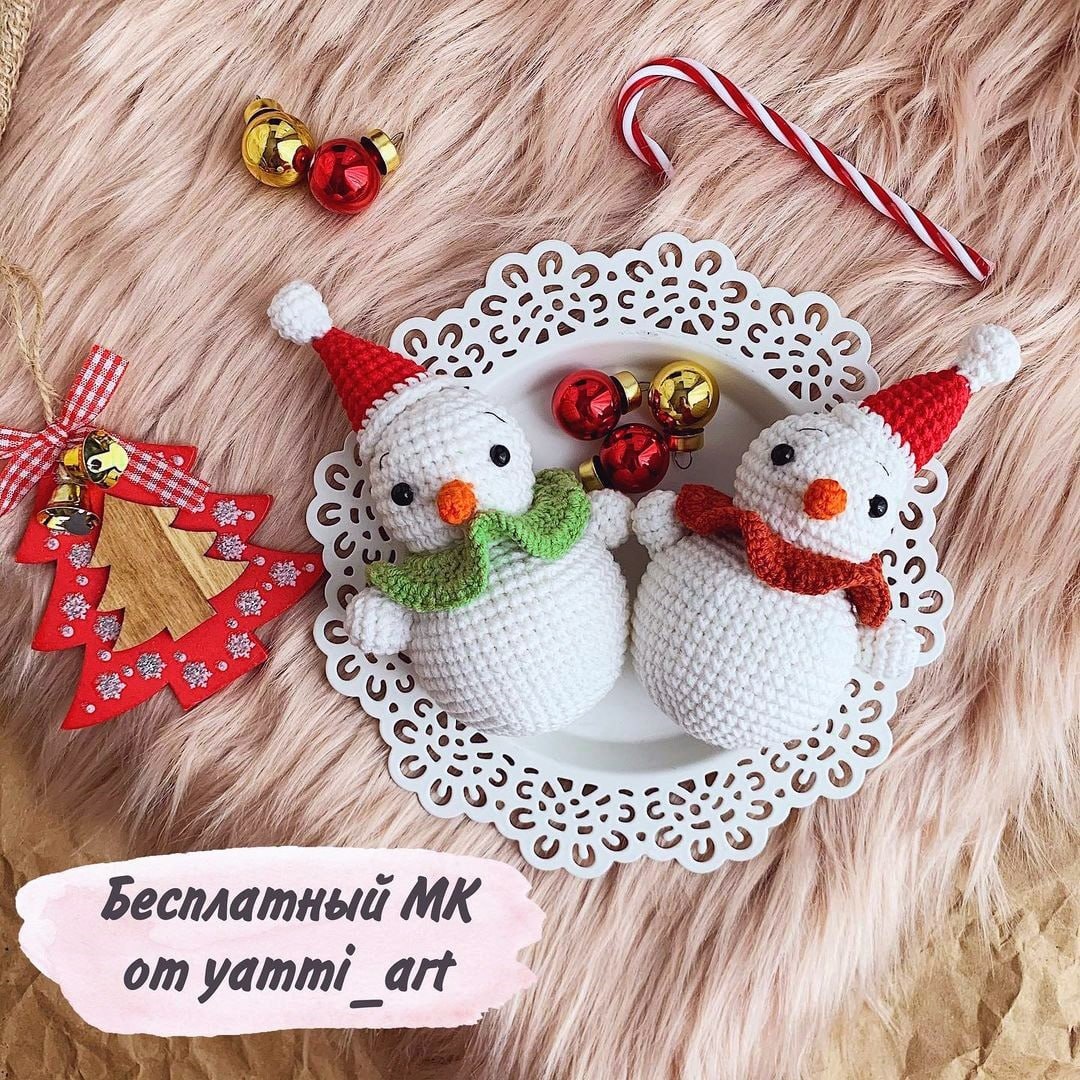 ☃️ PDF "Снеговичок" AmiMore - схемы и описания для вязания игрушек крючком Подпишись