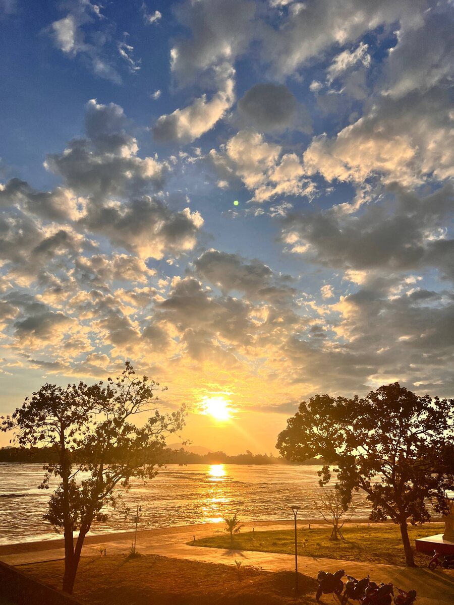 Просто посмотрите на этот закат на порогах реки Меконг. И пусть все у вас будет отлично. Я стоял, щурясь, не мог оторваться, пока солнце не скрылось. А в ушах-то все звуки воды, которая разбивается о глыбы. Они и сейчас слышны через закрытое окно. Спокойное неспокойное течение Матери рек. Все остальное кажется неважным и второстепенным, пока ты это слышишь и видишь. Обнял. #Лаос