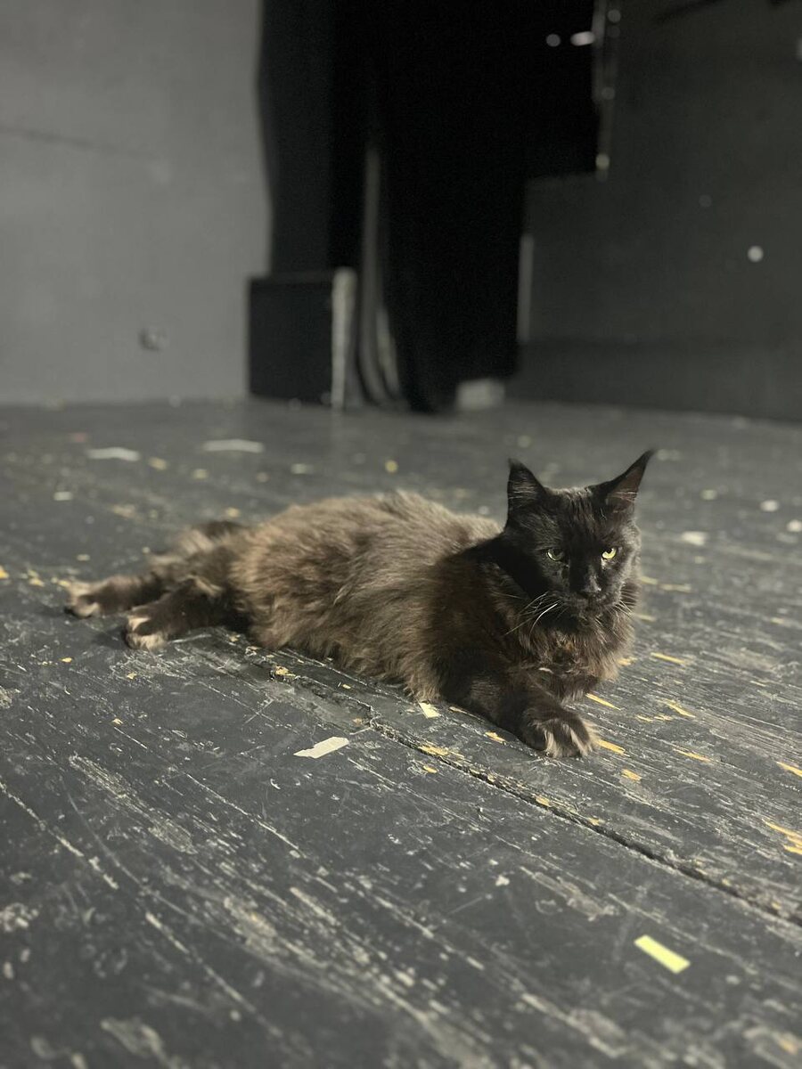 Рассказы кота бегемота 🐈⬛Добрый вечер, дорогие читатели. Расскажу вам о своем любимом месте в театре. Когда нет спектаклей и репетиций, я спускаюсь в театр и сажусь на середину сцены в свет софитов. 🐈⬛ Представляю себя героем разных спектаклей, воображаю. Кажется, что в зрительном зале не умолкают аплодисменты и вызывают, вызывают меня на бис! 🐾А еще в этом месте сцена очень теплая, черная поверхность нагревается от театральных фонарей и на ней приятно лежать и греть пузо. Актерам тоже на сцене часто жарко, непростая работа. Приходите поддержать наших актеров и насладиться театральным искусством. Например, завтра в 19:00: https://dombulgakova.ru/afisha/ #домбулгакова #ПатриаршиеПруды #МихаилБулгаков