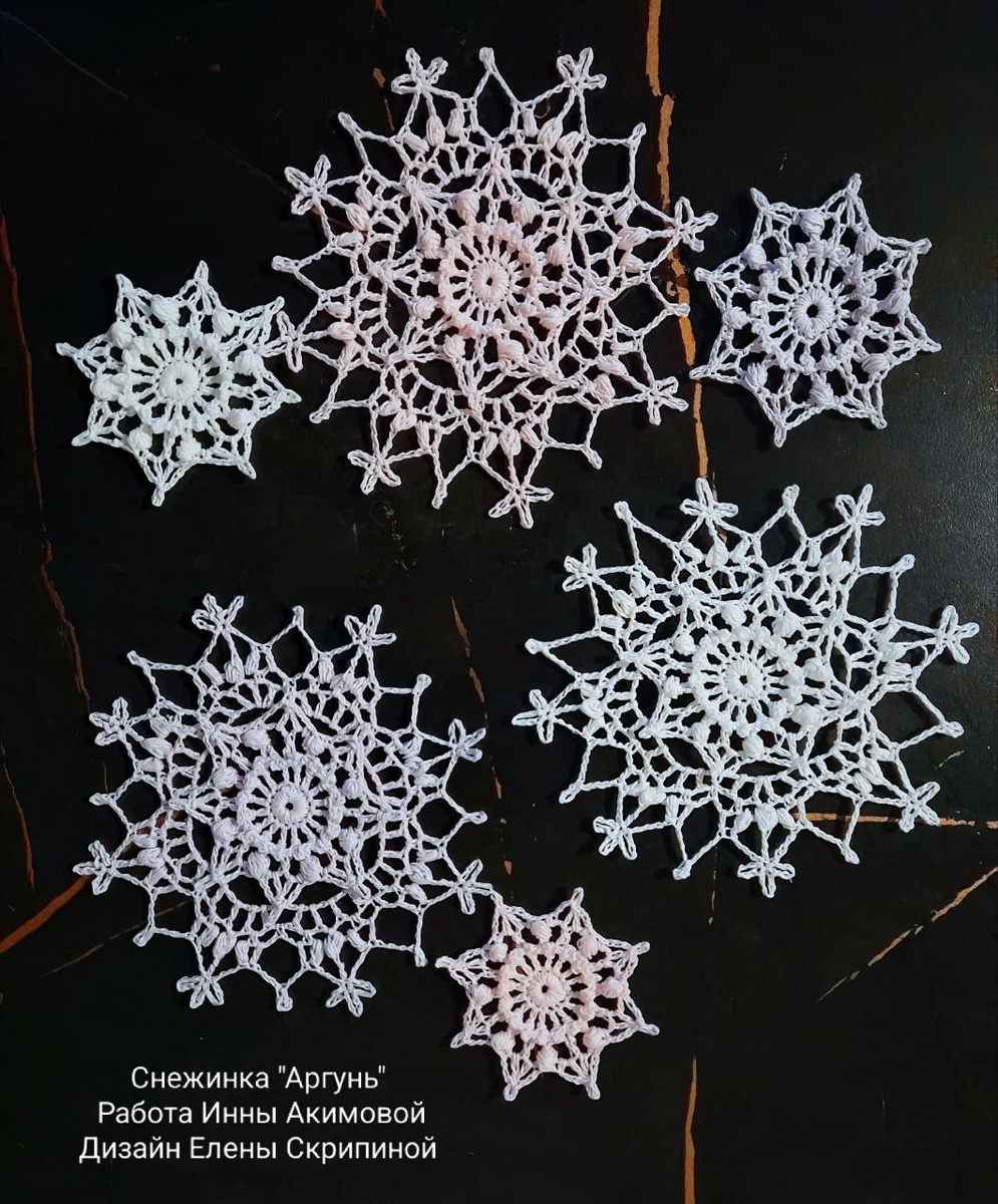 Дорогие подписчики! Вы, наверное, заметили, что в сообществе стало тише. Сейчас у меня большой объем работы: наконец утвердили книгу по снежинкам, которую планировали с 2022 года. Нужно подготовить схемы, описания и фото, сдать материал к январю-февралю. Часть снежинок вам знакома, но будут и новые. Формат пока уточняется, но хочется сделать книгу доступной. Из-за этого работа над третьей частью «Изольды» и второй «Круговорота» временно приостановилась. Спасибо, что вы рядом! На фото работа Инны Акимовой по моему дизайну "Снежинка" Аргунь ".