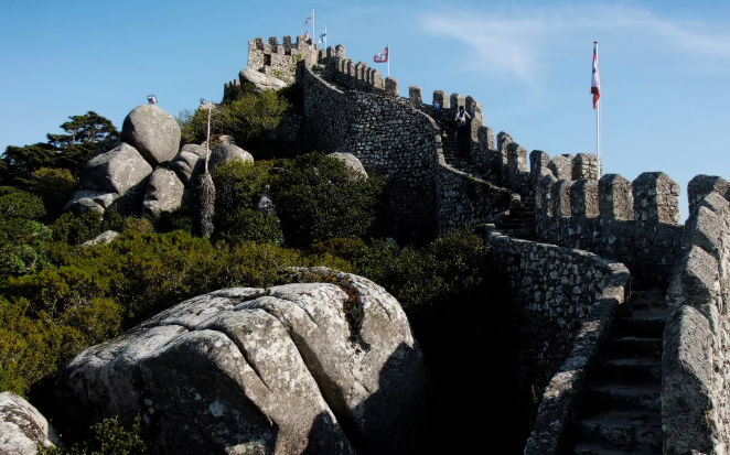 Крепость на холмах Синтры... Замок мавров (Castelo dos Mouros) — живописный средневековый форпост в окрестностях Лиссабона, молчаливый свидетель эпохи арабского владычества на Пиренейском полуострове. Замок расположен на лесистых склонах горы в городе Синтра, он входит в список Всемирного наследия ЮНЕСКО как часть культурного ландшафта Синтры. Крепость возведена в VIII–IX веках во времена мусульманского государства аль-Андалус, когда мавры (арабские и берберские завоеватели) контролировали большую часть современной Португалии и Испании. Ключевые вехи: Замок представляет собой систему стен и башен, выстроенных из местного гранита и сланца. Его планировка отражает типичные приёмы мусульманской фортификационной архитектуры: Характерная черта — неровный контур стен, повторяющий рельеф скалистого холма. Это позволяло экономить материалы и усиливать защиту за счёт природных преград. Современный облик замка — результат археологических исследований и бережной реставрации. Посетители могут осмо