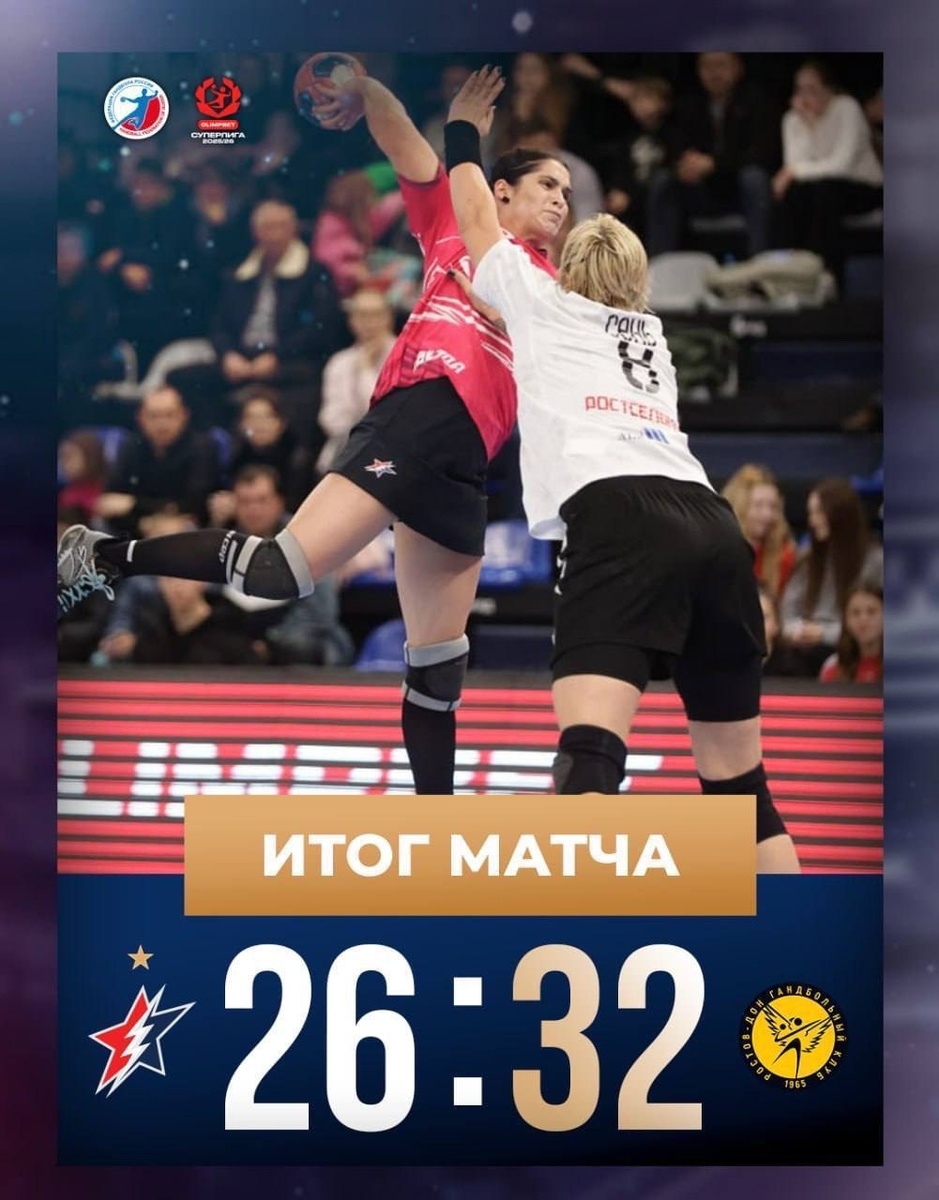 ✨ Наши новости! 🌟С ФАВОРИТОМ НЕ СПРАВИЛИСЬ 9 ноября в рамках Чемпионата России по гандболу состоялся матч между командами «Звезда» (Московская область) и «Ростов-Дон» (Ростовская область). 📍Место проведения: Чехов, ДС «Олимпийский» имени В.С. Максимова» 🔥 Результат матча: «Звезда» - «Ростов-Дон» 📝 Счёт: 26:32 (14:16) Лучшие игроки матча: 🔝в команде «Звезда» - Надежда Осипова 🔝в команде «Ростов-Дон» - Ярослава Фролова Фотографии с матча: vk.com/album-124089706_3106... «Звезда» осталась на шестом месте, отставая от третьей строки всего на одно очко. Следующий матч команда проведет 15 ноября в Майкопе против АГУ-«Адыиф». ⭐Разместить публикацию ⭐Поддержать голосом ✅ Спортивный Чехов https://dzen.ru/id/66f02564335c7475d84fbf87 http://vk.com/chehov_sport http://dzen.ru/chehov_sport