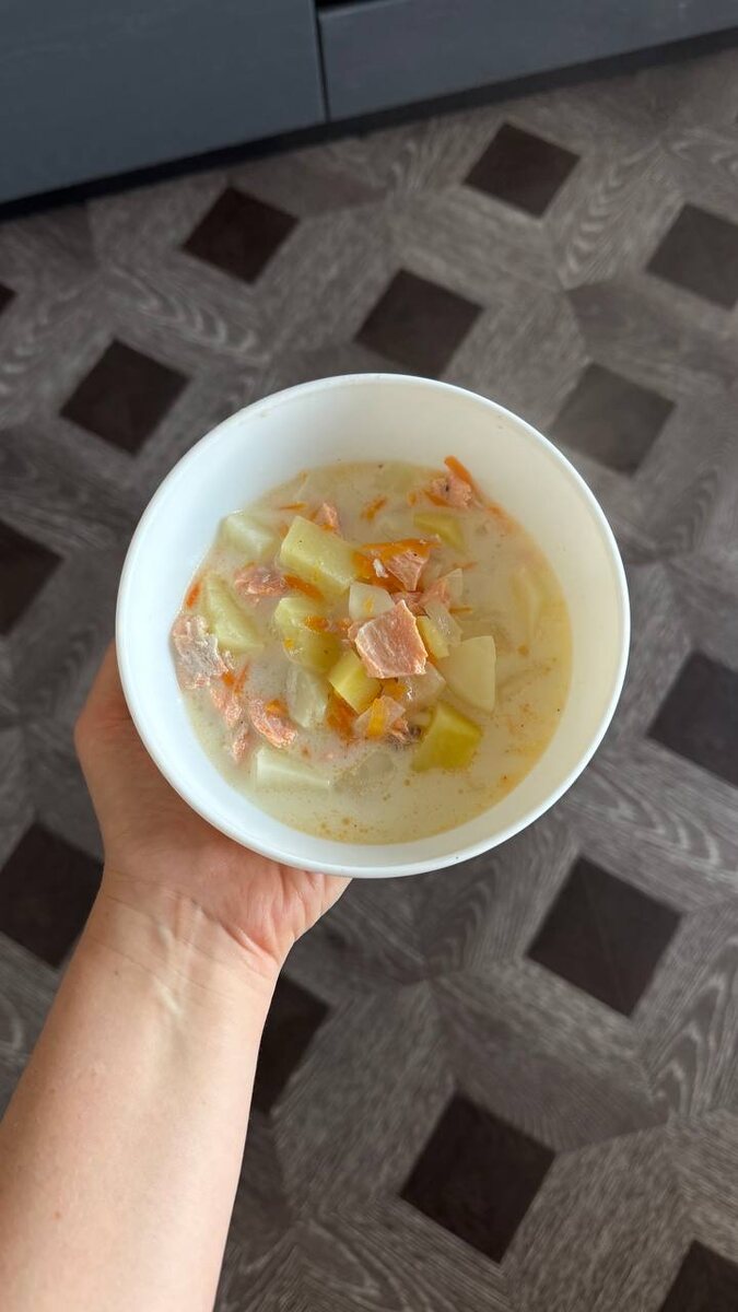 Сливочная уха 〰️〰️〰️〰️〰️ Все ингредиенты в супах на глаз. Делаю бульон из обрезков форели (можно любую красную рыбу). Примерно 6 средних картофелин нарезаю кубиком. Кидаю к рыбе. 1 луковицу режу мелким кубиком, 1 морковку тру на крупной терке и отправляю туда же. Варю это минут 15, затем достаю рыбу, остужаю её и отделяю мясо от костей. Отправляю обратно в кастрюлю его. Соль, перец, лавровый лист кладу на этом этапе. Добавляю 1 баночку плавленного сыра и перемешиваю пока он не растворится. Сыплю зелень, даю прокипеть еще минут 5 и выключаю. ⚪️⚪️⚪️⚪️⚪️⚪️⚪️⚪️⚪️ ⚪️⚪️⚪️⚪️⚪️⚪️⚪️⚪️🍃 ➖сохраняйте рецепт ➖давайте обратную связь ➖делитесь каналом с подругой Домохозяйка в сети #dm_обед