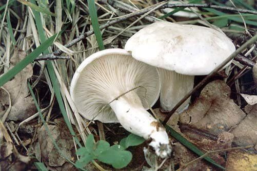 Подвишенник или клитопилус обыкновенный, или ивишень Отличный ценный и полезный гриб, который, к сожалению, знают немногие. Правда, его огуречный запах не всем нравится, но это уже, как говорится, на вкус и цвет... По правде сказать, внешне он похож на большую белую лисичку, только с розоватыми (хотя и не всегда) пластинками. Шляпка от белого до желтовато-серого цвета, гладкая, сухая, иногда блестящая, не гигрофанная (то есть не меняет цвет от влаги) и, что самое главное, не зонированная. Ножка и пластинки под цвет шляпки. Гриб можно жарить без отваривания. И всё бы хорошо, если бы он не был похож на весьма ядовитую говорушку восковатую, которую отличает соответствующий названию налёт на шляпке, концентрические пятнышки, пластинки, упирающиеся в ножку, а не сходящие по ней, и довольно сильный пряный запах.