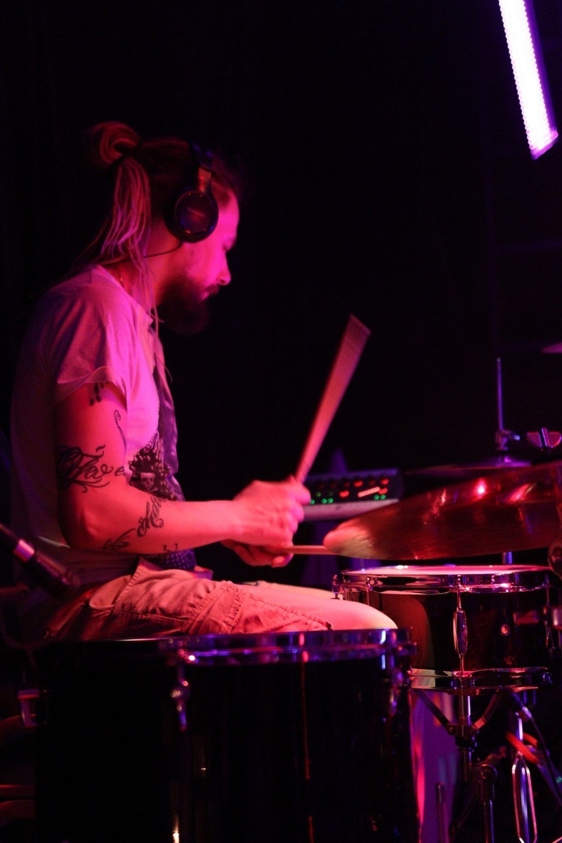 Джем-бэнд предполагает много импровизации и много сольных партий. Так, например, однажды к нам присоединился Женин друг Жан Лука. Барабанщик и перкуссионист из Италии. Он говорит по-русски, но примерно так, как я по-английски. Это был концерт в знаменитом клубе «The Hat», что на Белинского. И это был тот случай, когда «на этом языке» мы поняли друг друга лучше, чем «словами через рот». Буквально. Потому что в этот раз на сцене было аж три барабанщика сразу. Женин постоянный барабанщик Ярослав Писарев, я, и, соответственно, Жан Лука. И так сложилось, что в этот раз много соло и импровизации досталось именно нам троим. И мы прекрасно друг с другом пообщались в этот момент. Все втроем. И я искренне надеюсь, что «такого» общения будет больше и больше. Раз уж нам не всегда удается понять друг друга с помощью слов, то если мы еще и НА ЭТОМ ЯЗЫКЕ перестанем общаться, то зачем тогда вообще это все?