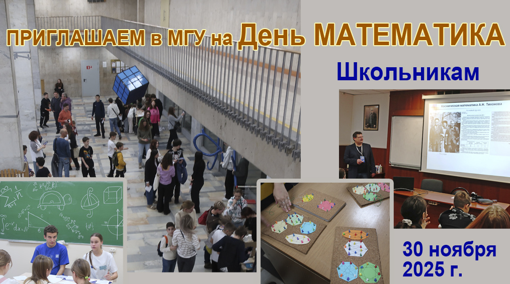 30 ноября 2025 г. приглашаем на праздник учащихся 5-11 классов, их родителей и учителей. Праздник будет проходить во 2-м учебном корпусе МГУ им. Ломоносова. Адрес: Москва, Ленинские горы, дом 1, строение 52. Мероприятие под названием "Математический калейдоскоп" - это увлекательное профориентационно-просветительское мероприятие, направленное на популяризацию изучения математики и расширение кругозора в области достижений фундаментальных и прикладных её разделов. Для участия в мероприятии надо предварительно зарегистрироваться. Дополнительную информацию о мероприятии смотрите по адресу https://mathday.msu.ru/2025/kaleidoscope В рамках "Математического калейдоскопа" для школьников будет проходить конкурс рисунков (на компьютере) и презентаций, посвященных математике, под названием "Я люблю МАТЕМАТИКУ". Итоги конкурса будут подводиться в 3-х номинациях: 1. Рисунок или анимационный ролик на тему "Я люблю МАТЕМАТИКУ". 2. Презентация на тему "Я люблю МАТЕМАТИКУ". 3. Презентация с
