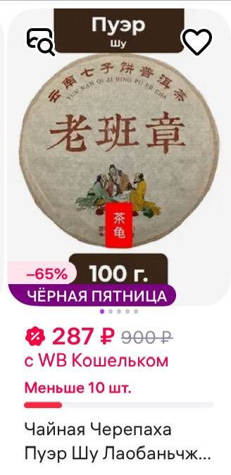 - 65% 🎆 - ЧЕРНАЯ ПЯТНИЦА у партнеров Чайной Черепахи! 🐢💣 👉 Пуэр Шу Лаобаньчжан PS: В ближайшие дни рассекретим для вас самые БОЛЬШИЕ СКИДКИ в магазинах наших партнеров и оффициальных представителей бренда😉 👉 https://www.wildberries.ru/seller/250055575 Магазин WB "Роскошь вкуса" ⏰Внимание: для Акции выделено всего 20 блинчиков❗️