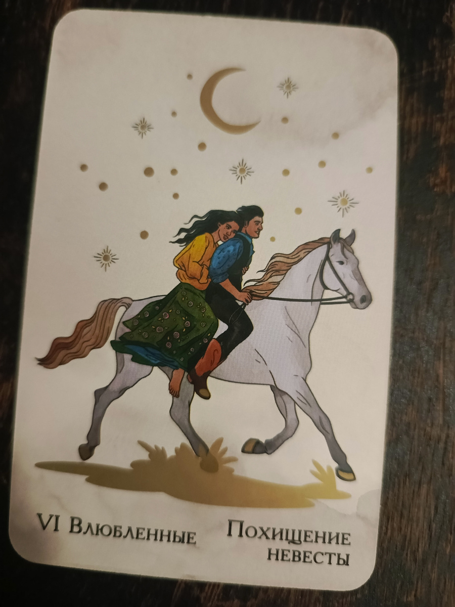 Карта дня - 13 ноября: Влюблённые Под покровом ночи молодая пара мчится куда-то, будто убегает от мира. Они скрываются, спешат, не оглядываются. Эта карта - о безрассудстве, о том самом порыве, когда сердце громче разума, когда желание увести за собой сильнее любых "нельзя". Ночь - их союзник. Она укрывает от посторонних глаз, от взглядов, которые могут осудить или остановить. Всё, что было - оставлено. Они бегут к звёздам, туда, где кажется, что будет легче дышать. Им ничего не нужно - ни вещей, ни гарантий. Только они и путь. Но всё же мир, в котором мы живём, не соткан из одних только чувств. Он плотный, материальный, требующий ответственности. Безрассудное следование за эмоцией - красиво, но чревато. Нельзя вечно жить в ночи, скрываясь. Любое бегство имеет цену, а любое сокрытие - последствия. Теперь - мои рассуждения. Карта Влюблённых часто читается как выбор - не просто между двумя людьми, а между двумя силами внутри нас: страстью и осознанностью. Здесь важно не то, куда они