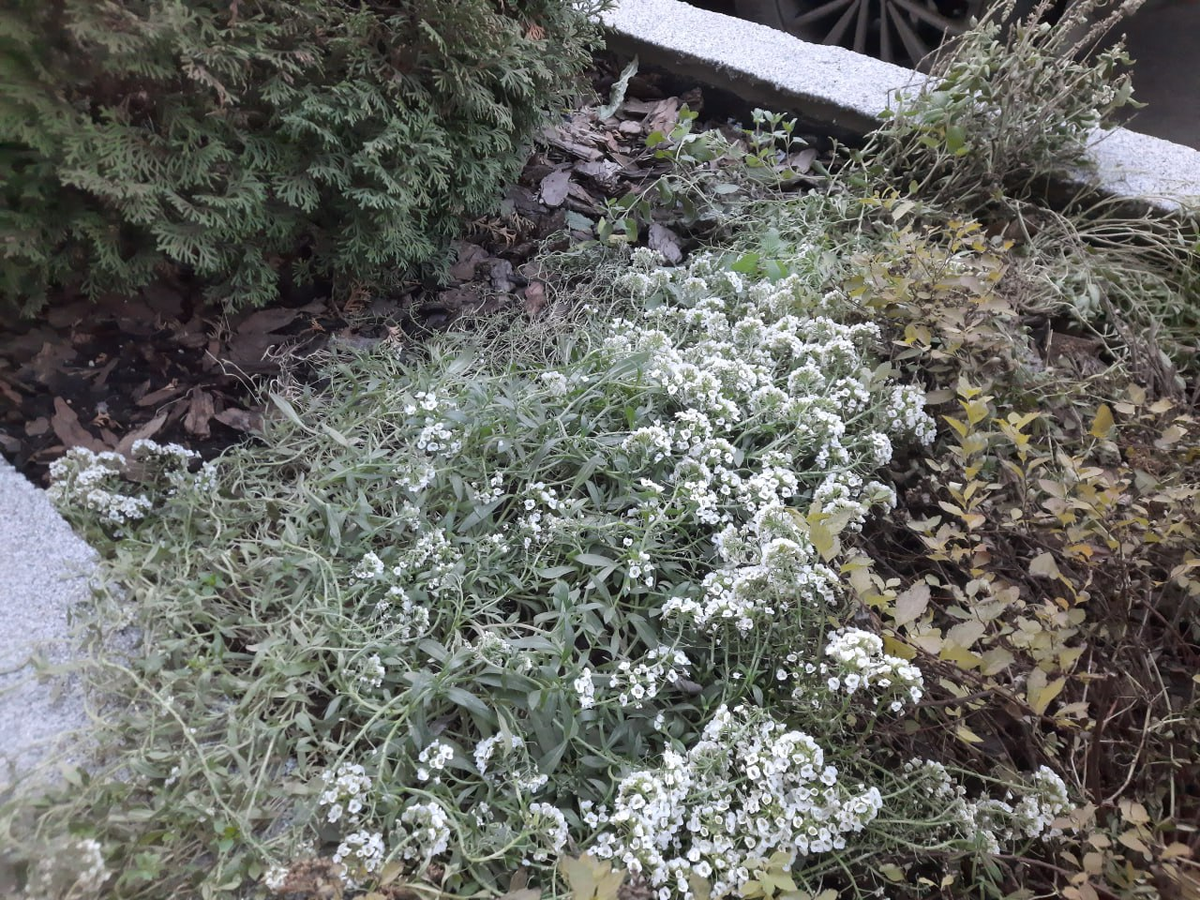 Алиссум (лобулярия) - один из редких летников, способных переносить небольшие заморозки. Мне случалось видеть алиссум, припорошенный снежком. Он был бодр и бел, как и сам снег. Даже сейчас, поздней осенью, когда все цветники уже почернели или вообще убраны, кое-где еще можно наткнуться на алиссум. Это впечатляет. Так топаешь по ноябрьской слякоти, вдруг хлоп - цветочки живые. Все потому что этот цветок относится к семейству крестоцветных, которые холодов не боятся. Капуста, редис, репа, брюква, китайская капуста даже в младенческом возрасте переносят небольшой минус. А, например, капусту-кейл (она же кале, грюнколь, кудрявая капуста) вообще оставляют в зиму. Так и торчит из сугроба, украшая сад. Правда, на вкус нам не понравилась от слова совсем. Что касается алиссума, то в любом достоинстве скрывается недостаток. Алиссум, подобно всем своим сородичам из семейства капустных, может подвергаться нашествию вредителей. Но это случается нечасто, и в большинстве случаев можно все лето и част