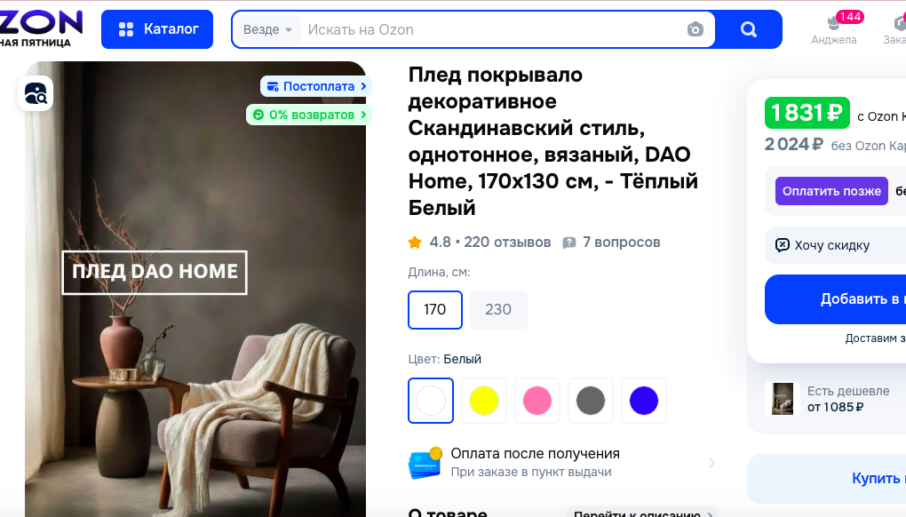 1. декоративное покрывало с артикулом 661510274 с OZON...