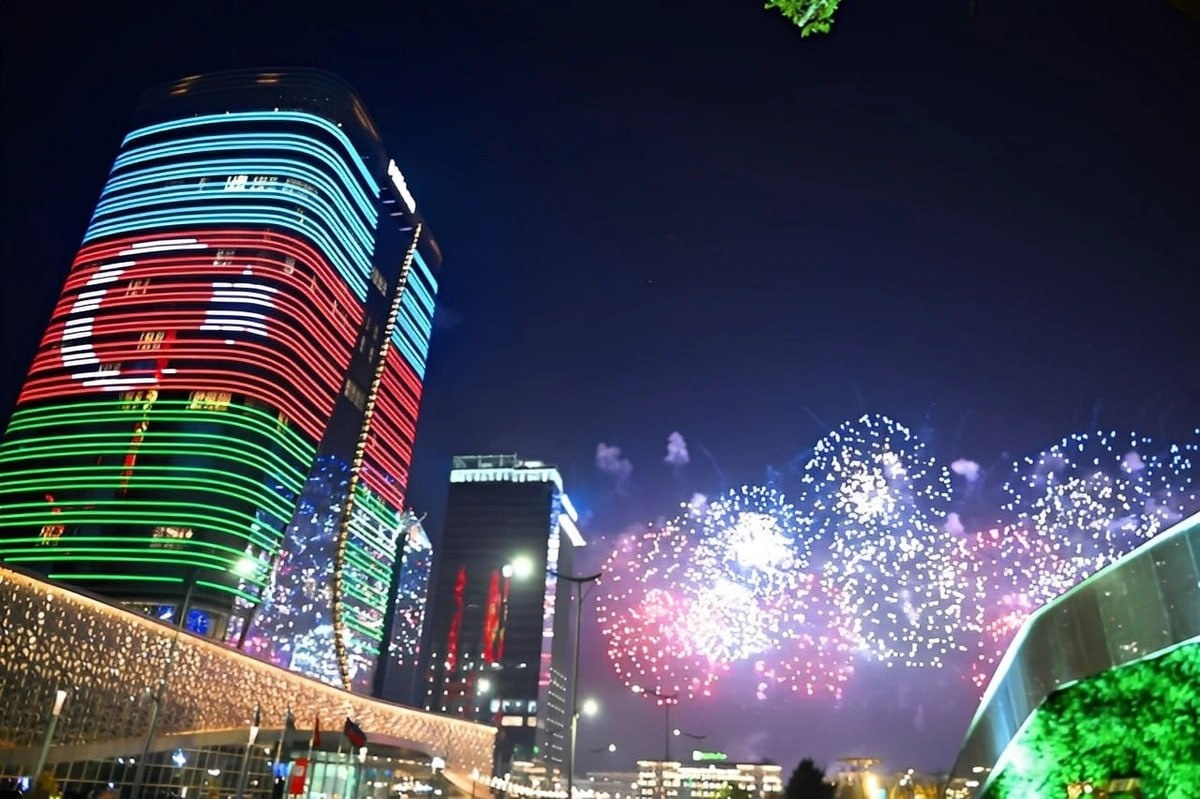 🇦🇿🇺🇿 В преддверии 7-й Консультативной встречи глав государств Центральной Азии на зданиях в Ташкенте спроецированы флаги государств