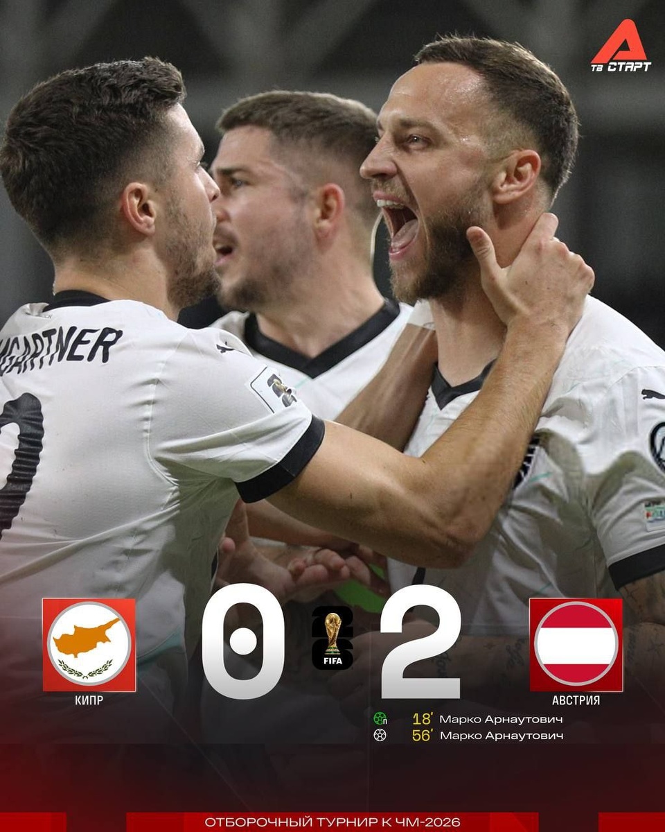 🔝💥 Сборная Австрии может выйти на ЧМ-2026 уже сегодня Если Босния не обыграет Румынию. Победу команде Ральфа Рангника на Кипре обеспечил дубль Марко Арнаутовича – 2:0. Напомним, что Австрия не играла на ЧМ с 1998-го 📜 🛒 Наше приложение в Google Play 💙 Наше приложение в RuStore 🛒 Наше приложение в App Store