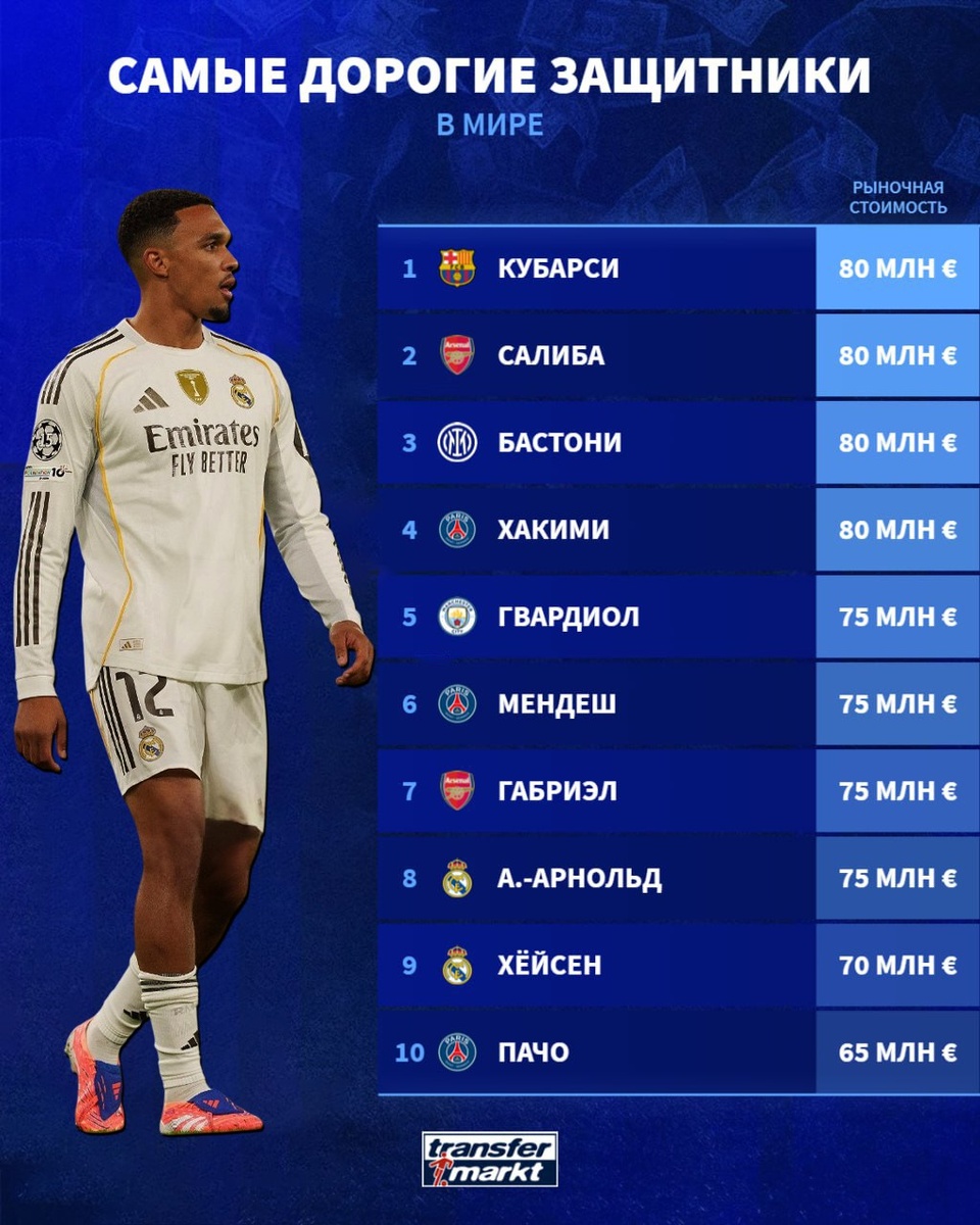 Самые дорогие защитники мира по версии Transfermarkt @мировой Футбол