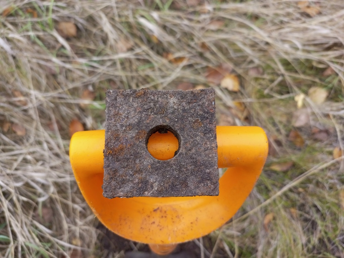 Приветствую друзья. Наконец-то денек без дождя. Хотя выезжал немного моросило. Заехать далеко куда-то нет возможности, дороги раскисли, а у меня никак не джип)). Поехал в одно хоженое-перехоженное место. Кого тут только не было. Наверно копатели со всего района, ну и я не раз сюда наведывался. И все равно, что-то да попадалось. На этом месте раньше стояла усадьба во времена Николая 2, и естественно после революции ее разграбили и растянули по кирпичикам. Остался только фундамент, который зарос колючим кустарником. Включил детектор и он начал пищать на все, думал, что что-то рассыпано. Даже психанул, а оказывается контакт немного отошел. Ну да ладно. И первый сигнал был, вот такой кусок металла с отверстием. Толстостенный и весомый килограмма на 1,5 потянет. Дальше отковырял стальную проволоку, которой тут было много. И тут появился слабый при слабый сигнал, еще и глубокий, но бил четко в монету. И не ошибся, действительно была монета. Это была деньга 1731 года. Чаще всего она попадает