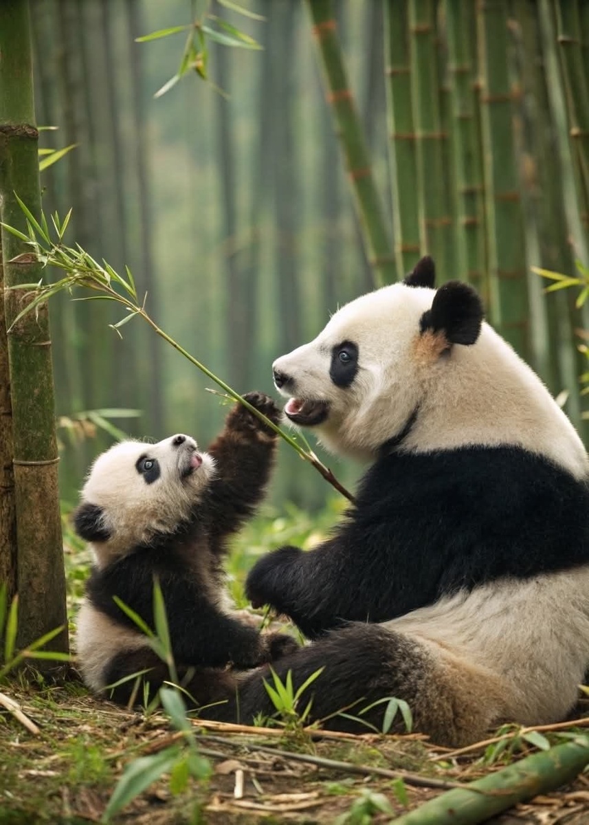 Панды – это, пожалуй, единственные существа на планете, которые могут питаться бамбуком и выглядеть при этом как пушистые антистресс-игрушки. Эти черно-белые увальни, кажется, созданы для того, чтобы вызывать умиление и чувство вины за съеденный на ночь бутерброд. Но давайте копнем глубже (как панда в поисках сочного побега бамбука) и узнаем больше об этих удивительных животных и их потомстве. Беременность у панд – это как игра в угадайку. Длится она от 3 до 5 месяцев, и даже ученые не всегда могут точно сказать, "в положении" ли дама. Представьте себе: вы ждете ребенка, но не уверены, стоит ли красить детскую в розовый или оставить все как есть. Когда же маленький панда-сюрприз появляется на свет, он больше похож на розового голого мышонка, чем на милого медвежонка. Весит он всего около 100 грамм – примерно как плитка шоколада (только есть его, конечно, не стоит!). Мама-панда, наверное, первая мама в мире, которая рожает ребенка легче, чем его потом выкармливает. Вырастить маленькую