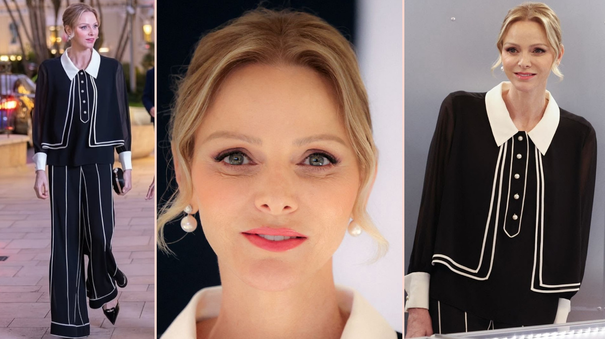Княгиня Шарлен восхитила поклонников в гламурном костюме в полоску