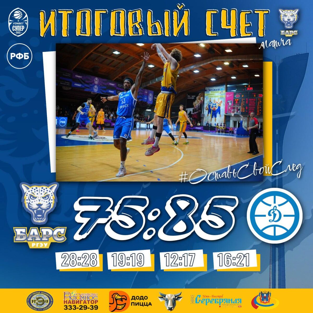 В ответ на пост «БАРСы» проиграли «Динамо» на домашней площадке. Игра завершилась со счетом 75:85