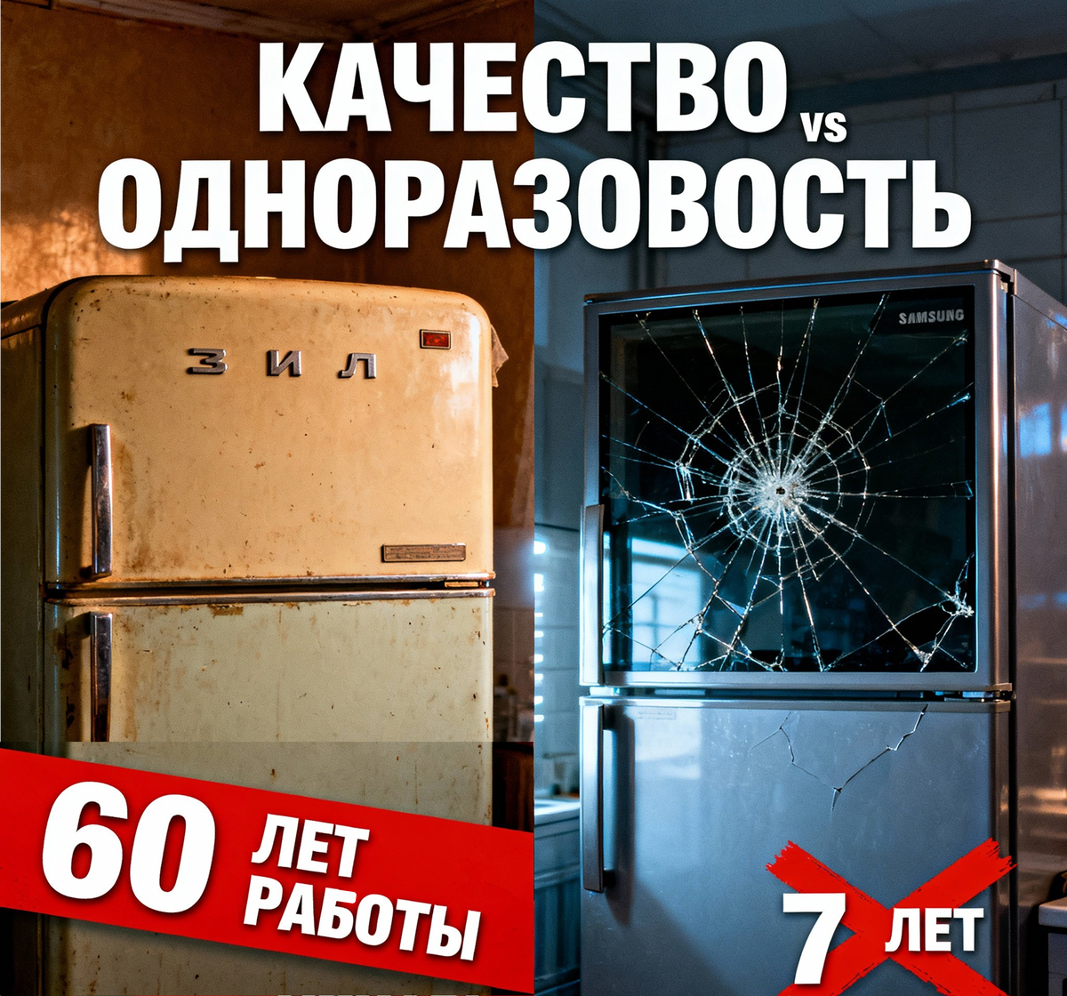 Мы живём в странном мире. Купили телевизор за 50 тысяч — через 5 лет выбросили. Холодильник за 40 тысяч — через 7 лет компрессор умер. Пылесос за 15 тысяч — через 3 года на свалку.