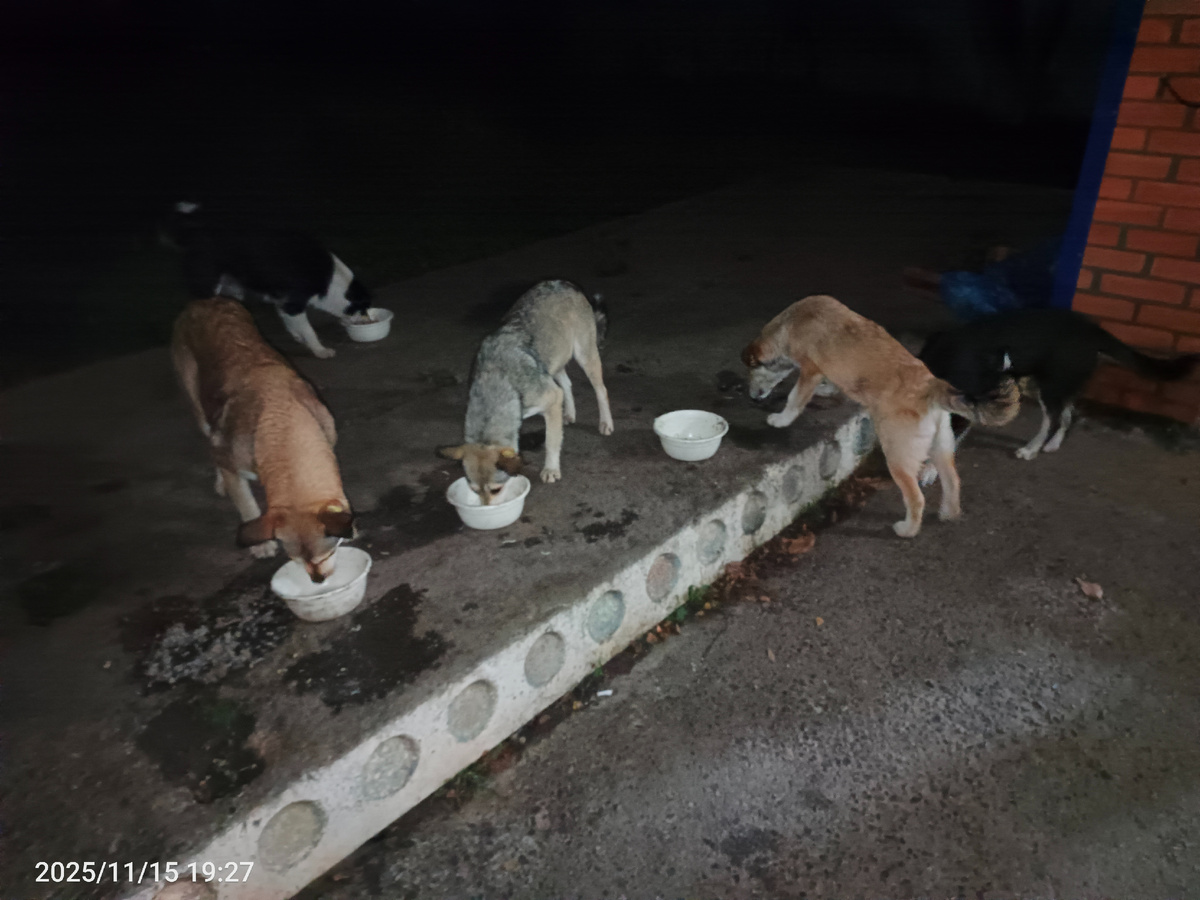Доброй ночи! Ходили сегодня с т Галей в гости к Юле на чайковский ,а перед этим зашли покормить Кукусиков . Сегодня вечером была вся компашка. Кушали очень хорошо,видимо было очень вкусно. На столько вкусно что одна из Кукусиков залезла мордой в ведро)). На фоне мама Кукусиков . Чай попили, пообщались и пошли домой. Белочка нас ждёт,хотя не только она, ещё и Василиса. Пришли домой и я пошла выгуливать собак и вижу такую картину. Белка хочет забрать кость у Василисы. В итоге она забрала)). Кость эту Сэм из дома вынес,думал что дома кошки заберут,а на улице я забрала у него,а то и не сделает свои дела. Ну а Василиска подхватила кость. Добрых вам снов и до завтра!