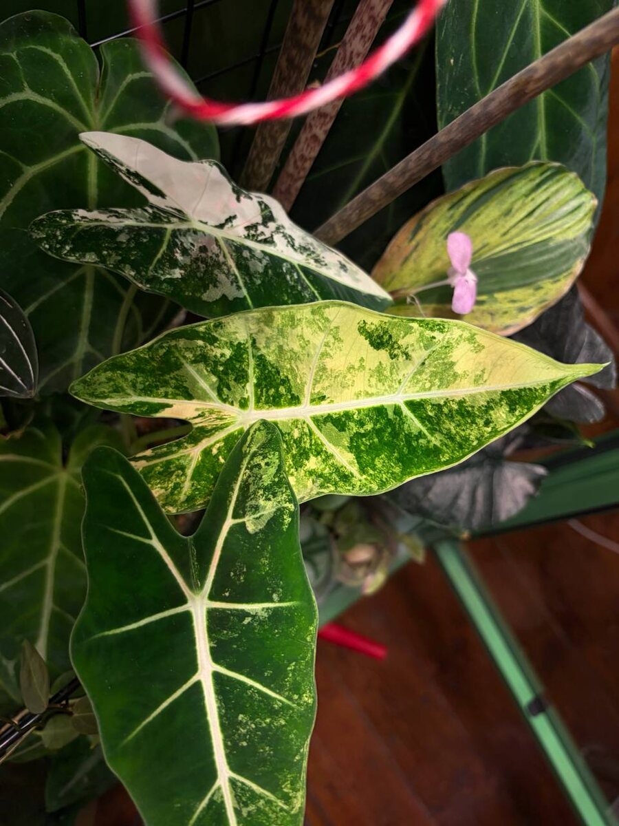 Весь день сегодня пидорила старую плиту, зато под вечер заметила этот шикарный лист Размером пока не радует, зато вар идеальный🤤 Фрайдек, где мои лопухи? #alocasia_frydek_var