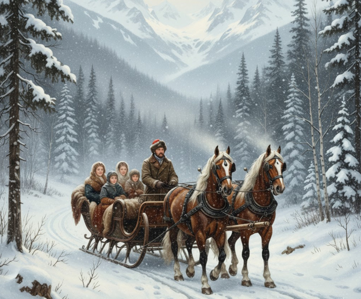 Двести лет назад зима была не просто временем года — она становилась полноценным испытанием. Путешествия превращались в дело медленное, опасное и зачастую жизненно рискованное. И всё же люди передвигались: торговали, ездили на ярмарки, навещали дальних родственников, отправлялись в города и по службе. Зимняя дорога была другой цивилизацией, отдельным миром, который жили бы мы сегодня — показался бы фантастикой. Если летом дорога была грязной, вязкой, непредсказуемой, то зимой она превращалась в ровную, скользящую трассу. Именно поэтому многие предпочитали путешествовать зимой: лёд и снег упрощали движение. Основным средством были сани — лёгкие, быстрые, почти бесшумные. Они скользили по утрамбованному снегу, а звон колокольчиков, привязанных к дуге, служил не украшением, а предупреждением встречным экипажам. Лошади в санях могли идти дольше, чем в телеге, меньше уставали, а скорость в условиях морозного воздуха казалась невероятной. Богатые путники брали крытые сани, внутри которых укл