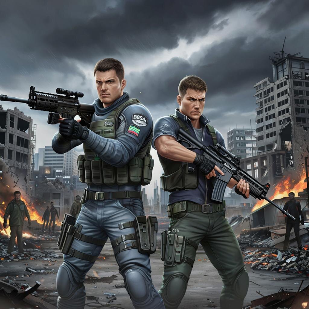 Отряд "Альфа" из семи человек быстро занимает позиции. Капитан Крис Редфилд проверяет снаряжение, его лицо освещено голубым светом тактического планшета.