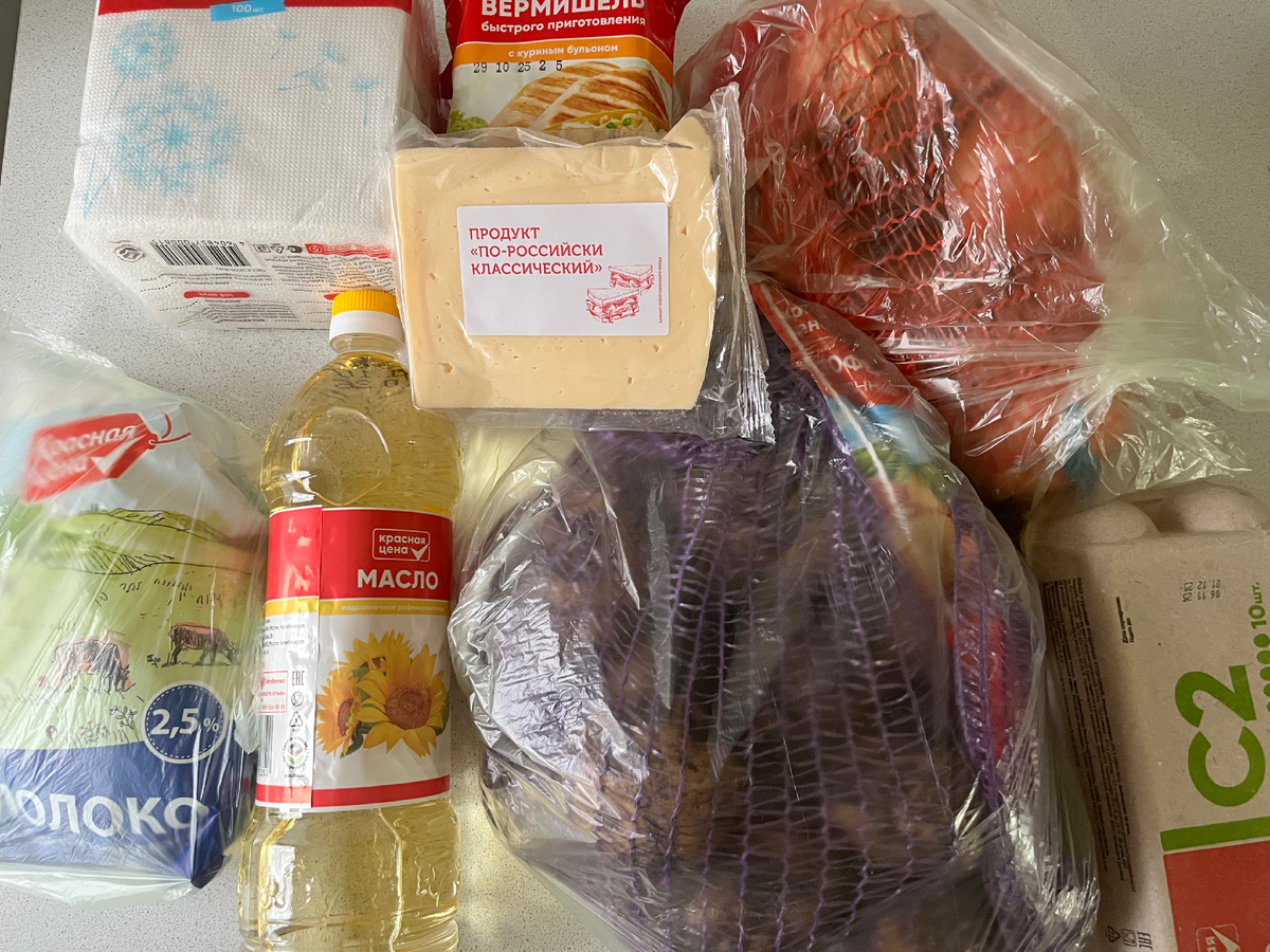 Лук и картошка в сетке. Потому что они дешевле.