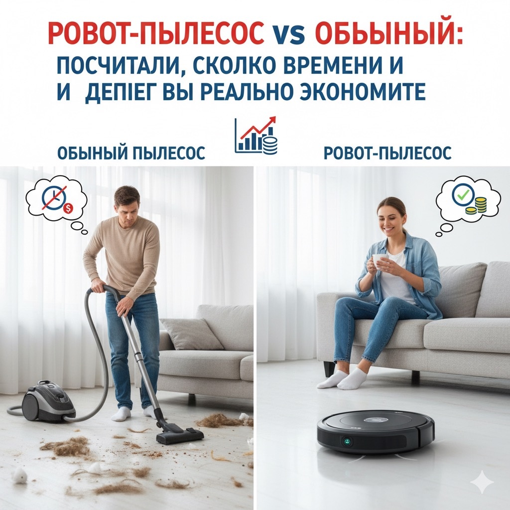 Робот-пылесос vs обычный: посчитали, сколько времени и денег вы реально экономите 💸