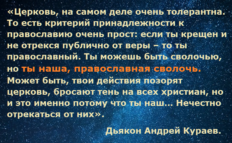 О чём это говорит? – Это говорит о том, что христианство - это некое общественное образование, которое не имеет ни авторитета, ни духовной силы. Да и какая духовная сила может быть у христианства, если в нём оправдывают и «сволочей», и «сумасшедших», о которых говорят сами попы. Смотрите баннеры:
