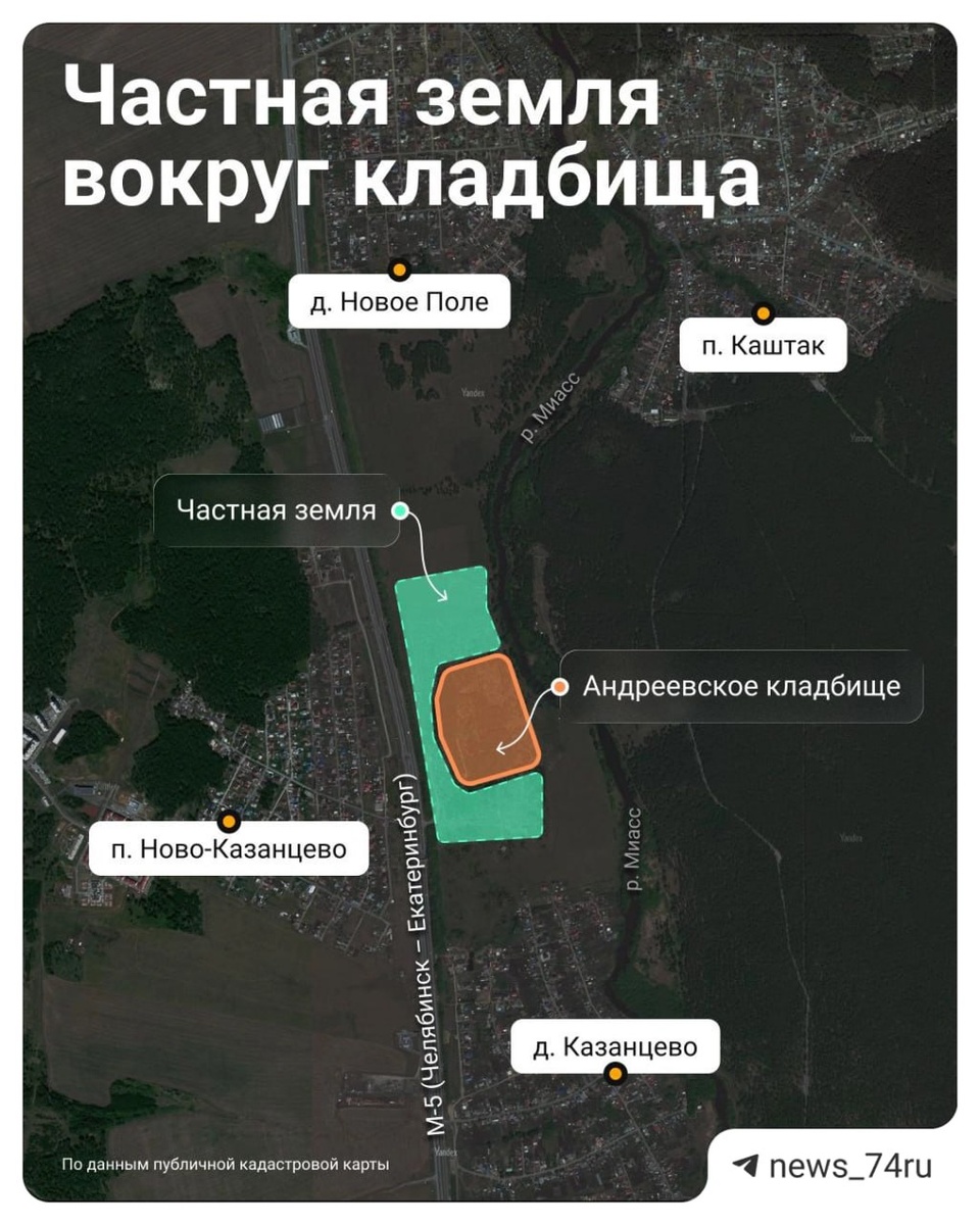 Под Челябинском вдоль кладбища вырыли рвы и запретили новые захоронения Огромный участок рядом с Андреевским кладбищем оказался в частной собственности. Горы земли от рва перекрыли одну из дорог к могилам. 🟥 Кладбище со временем расширилось и заняло почти половину поля. В ноябре к дальнему сектору стало сложно добраться из-за рва. Челябинка Надежда рассказала, что десять лет назад похоронила здесь тётю — её могила в крайнем квартале перед новым рвом. Для более поздних захоронений место отводили ниже, ближе к Миассу, и именно туда теперь трудно пройти. «Туда только пешком, но идти по такой жиже не хотим. Раньше дорога была поперёк поля, но её перекопали. Зачем кому-то земля посреди кладбища, дома что ли будут строить с видом на могилы?» — говорит посетительница Андреевского кладбища. 🟥 Рядом с рвом установили табличку о частной собственности и запрете новых захоронений. Как рассказал предприниматель Сергей Игнатов, занимающийся похоронными работами, участок окопали в октябре, когд