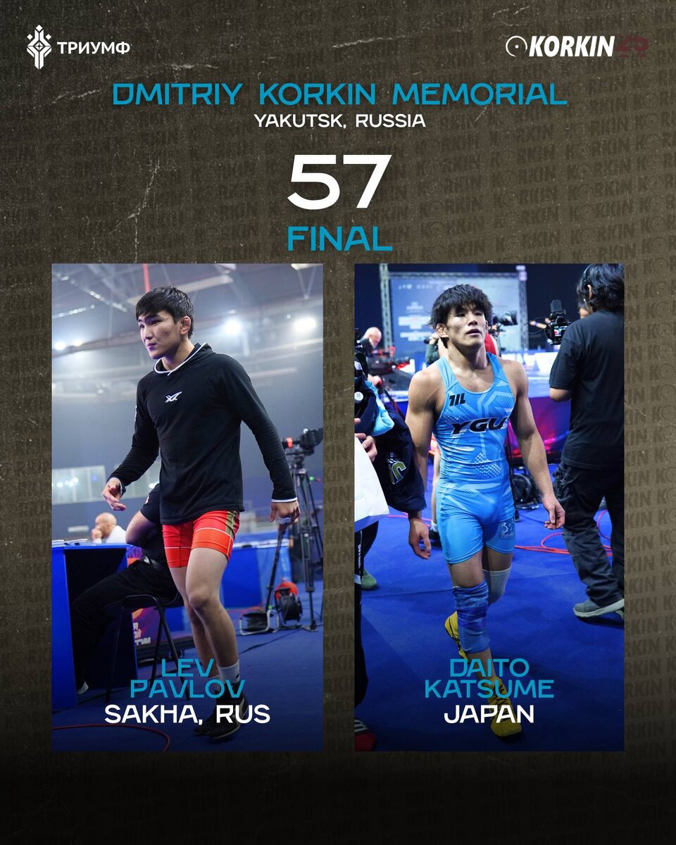 🔥🤼♂️ Второй день турнира Коркина: финалы и борьба за золото! Сегодня в ЦСП «Триумф» пройдут решающие схватки Международного турнира, посвящённого памяти Дмитрия Коркина. Финалисты выйдут на ковёр, чтобы определить сильнейших в своих весовых категориях. Вот кто встретится в решающих поединках: • 57 кг — Лев Павлов (Якутия) / Даито Кацуми (Япония) • 61 кг — Батор Султимов (Бурятия) / Такара Суда (Япония) • 65 кг — Владислав Кривошапкин (Якутия) / Рейджи Учида (Япония) • 70 кг — Константин Капрынов (Якутия) / Виктор Рассадин (Таджикистан) • 74 кг — Олег Фомин (Якутия) / Эрденебат Тугсжаргал (Монголия) • 79 кг — Гарзон Тамайо (Куба) / Дмитрий Куприн (Кемеровская область) • 86 кг — Буянто Шадапов (Бурятия) / Али Цокаев (Азербайджан) • 92 кг — Ньургун Сергин (Якутия) / Шахман Жабраилов (Молдова) • 97 кг — Евгений Аронов (Якутия) / Константин Пшеничников (Кемеровская область) • 125 кг — Никита Хабаров (Якутия) / Никита Софронов (Якутия) Финальный блок начнётся в 17:00. Следим за турниро