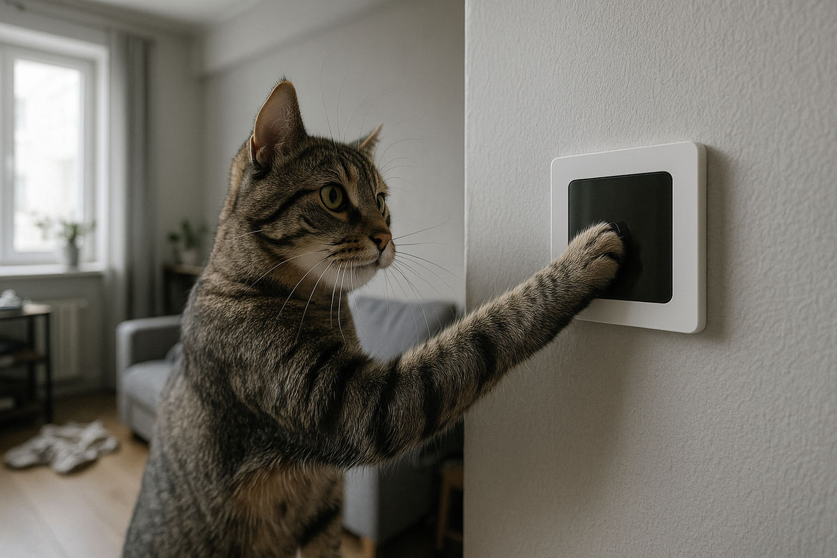 У меня дома есть один персонаж, который решил, что он главный по освещению. Кот. Я не знаю, как он это делает, но стоит мне отвернуться — свет уже где-то горит. И самое забавное, что он даже не боится, что я замечу. Он делает это с таким спокойным видом, будто проверяет мою реакцию. Первый раз я подумал, что мне показалось. Второй раз — что я сам забыл. А вот на третий я тупо увидел, как он подпрыгнул и лапой задел сенсор на стене. И включил лампу. Просто так. Видимо, решил, что в комнате слишком темно для его важных кошачьих дел. Я тогда понял, что если животное включает свет чаще меня, значит, система освещения в квартире живёт какой-то своей жизнью. Я либо забываю выключать, либо кот включает. Результат один — свет горит больше, чем надо. Поставил датчик и сценарий, чтоб всё регулировалось само. Теперь, даже если кот решит устроить ночной перфоманс, свет живёт по нормальным правилам, а не по его. Ребята из lumux помогли это настроить так, чтобы и мне спокойно, и кот не страдал от те