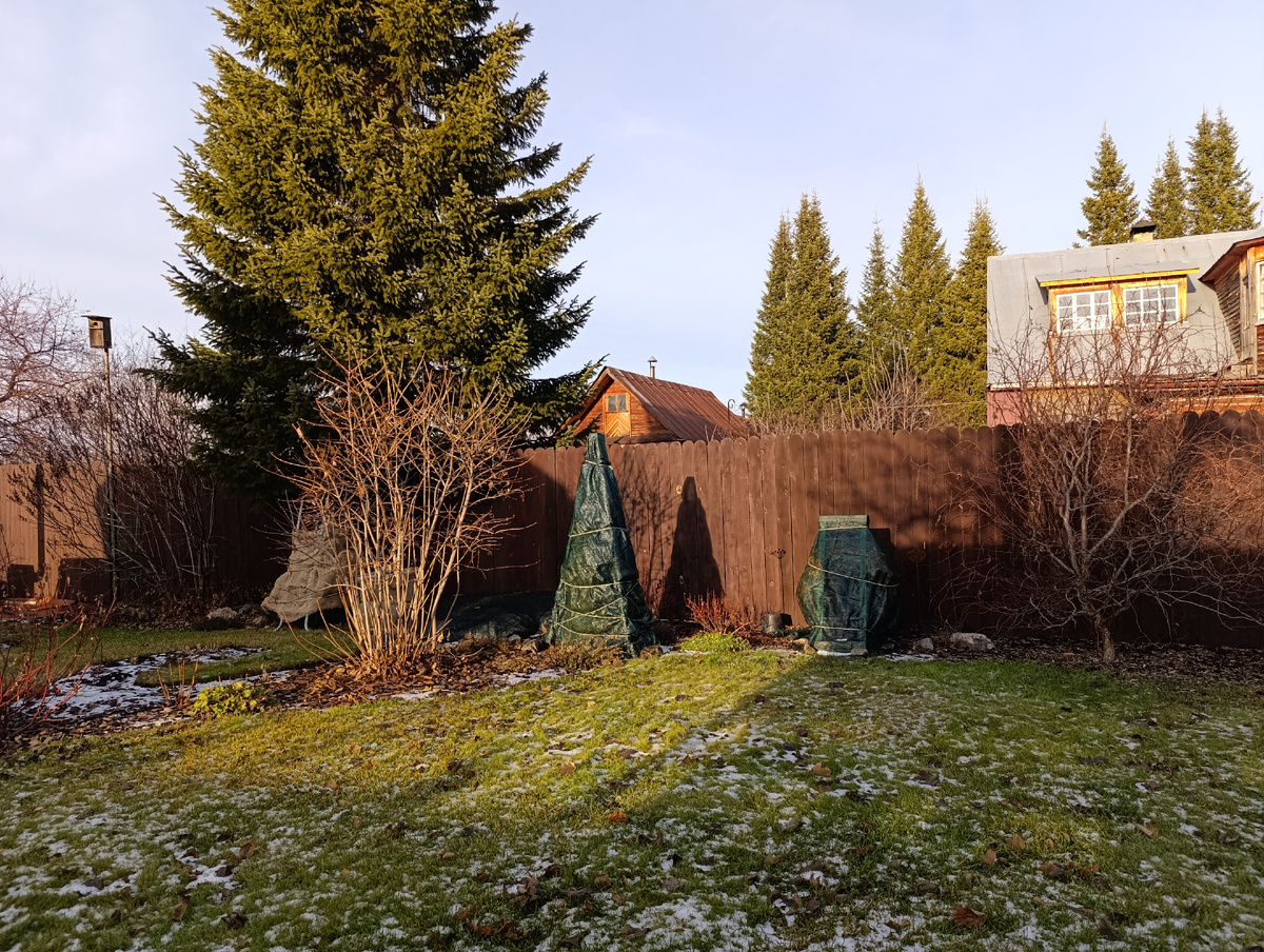 Погода на улице такая мягкая, воздух влажный и свежий - дышать не надышаться! Середина ноября, а у нас теплынь +6 градусов днём. В городе сошёл даже тот хилый снежок, что там был. В деревне скукожился тоже, но остался тонким слоем, напоминанием: это не весна, вам только кажется. В основном всё пожухло и облетело, но некоторые цветы и не думают сдаваться. Всегда было интересно, как у таких растений от морозов не страдают листья? Да уж, у природы столько чудес! Прежде чем приехать в деревню, я посетила заседание клуба "Цветоводы Тюмени" Традиционно зимой там проводятся лекции или вэбинары, чтоб было легче эту самую зиму пережить. Ну и знания получаешь. В этот раз речь шла о деревьях, как об основе сада. Моё твёрдое убеждение, что сад без деревьев скучен. И, если бы у меня было не 10 соток за всё про всё, то я бы точно насажала деревьев побольше. Сейчас же у меня из взрослых деревьев только яблони. Ну и молодые ещё туи и ива. Негусто. Тем не менее, видовая картинка в моём саду очень даже