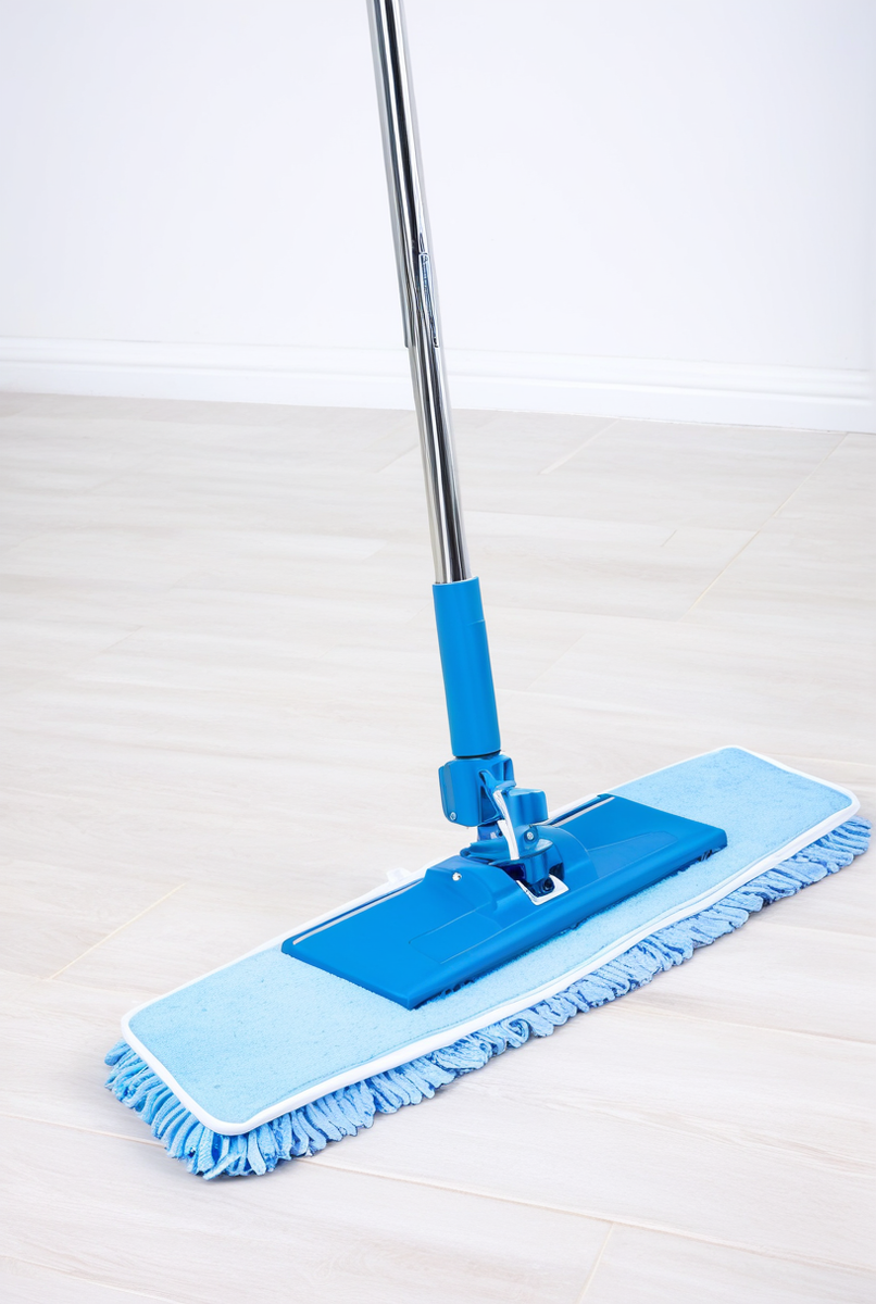 - Для сухой уборки (обеспыливания) полов, например, ламинат, незаменима швабра с мопом из микрофибры. Она эффективно собирает пыль. Здесь оптимален флаундер с креплением-липучкой, которое позволяет менять уборочный инвентарь (насадки) максимально быстро и гигиенично.