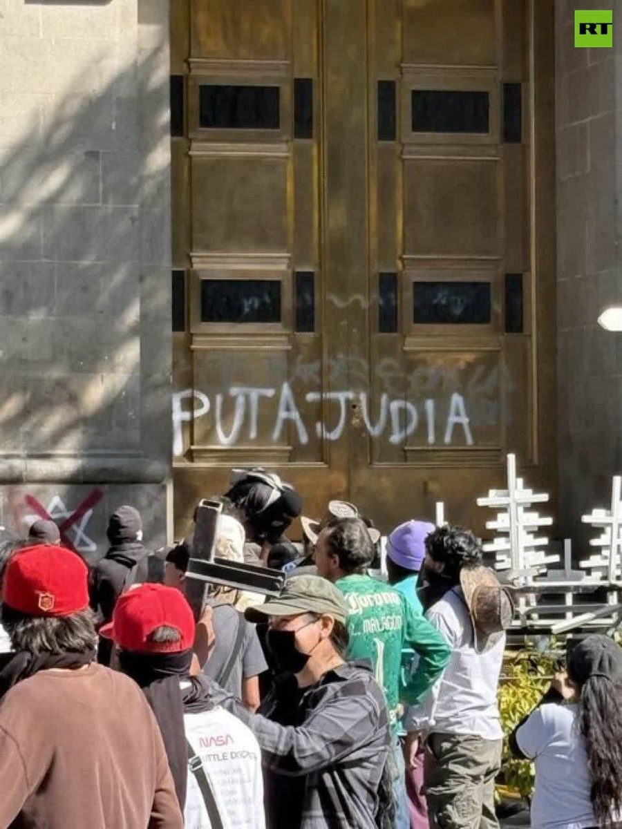'JEWISH WH*RE' — anti-Sheinbaum Mexicans desecrate National Palace gates in uprising