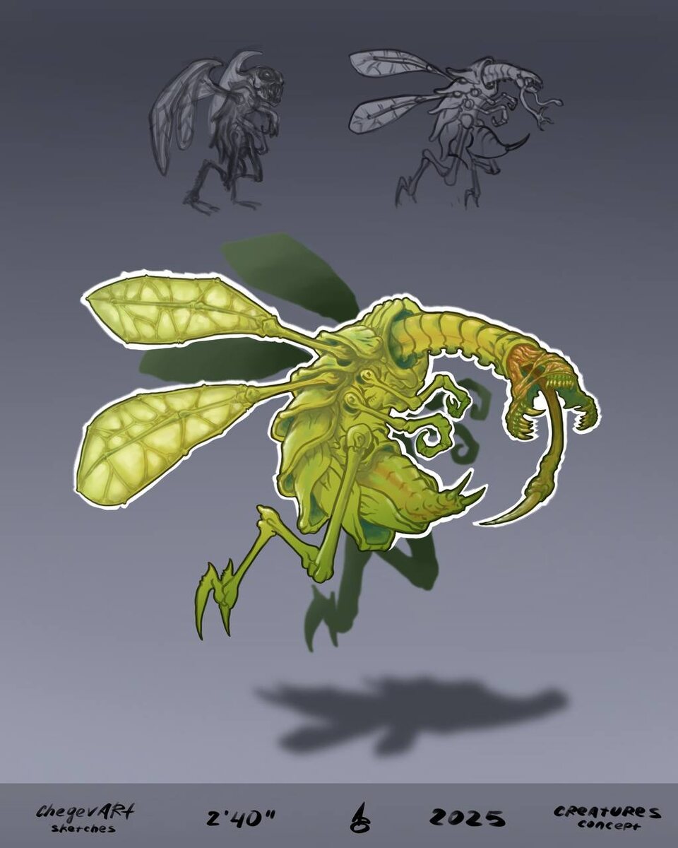 Пополняем бестиарий моей далекой далекой планеты 🪐 и наполняем мир всякого рода созданиями. Пока вырисовываются концепты существ, далее можно добавить флоры и фауны уже, ну и погодными условиями приправить, а потом и персонажей подселить или отправить туда бравых космических путешественников аварийно севшими на эту землю. Чтобы поучаствовали в конфликте между племенами и спасли принцессу😅 Ну норм же:)