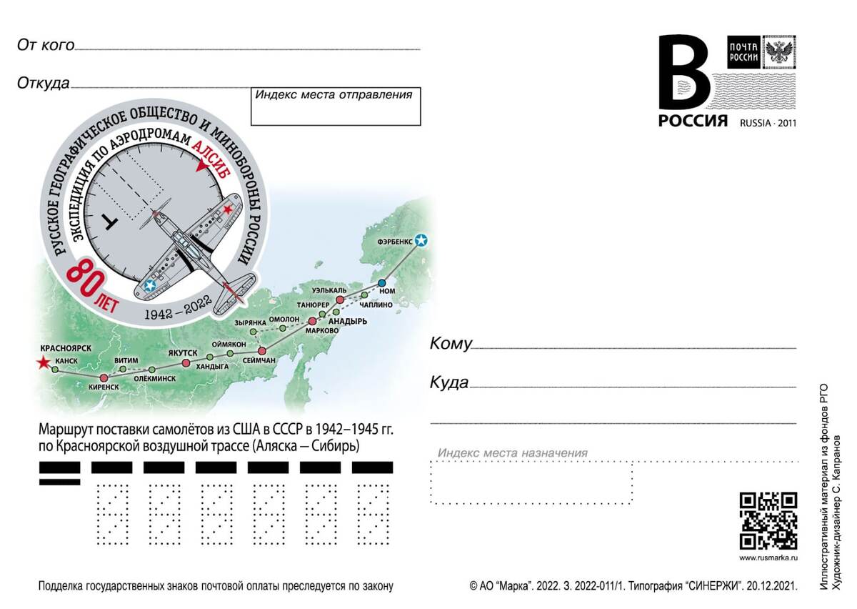 16 ноября 1942 года в Красноярске приземлилась 1-я группа перегоняемых американских самолётов по трассе «Аляска – Сибирь». О том, как это событие отражалось в почтовых марках, рассказывает Сергей Коробов. Авиалиния «АлСиб» начиналась в городе Грейт-Фолс, штат Монтана, до Красноярска и далее, через Сибирь и Урал в Москву, общей протяженностью 14 тысяч километров. За 1942-1945 годы было переправлено 7 926 боевых самолётов. История авиатрассы «АлСиб» началась 9 октября 1941 года, когда Государственный комитет обороны СССР принял решение об оранизации воздушной перегонки самолётов из США в СССР. Тогда Советский Союз и США подписали соглашение о взаимных поставках по ленд-лизу, в том числе и боевых самолётов по маршруту Аляска – Чукотка – Якутия – Красноярский край, сокращённо – трассе АлСиб. По постановлению ГКО № 739с от 9 октября 1941 года уполномоченным ГКО по созданию секретной авиаперегоночной трассы «АлСиб» (форт Фэрбанкс – Красноярск) был назначен генерал-майор авиации Василий Серге