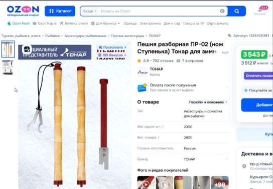 Суть в том, что ее вес четыре с половиной килограмма. И перед тем, как выходить на первый лед, я со всей дури пробую его пробить. Если он пробивается, то значит толщина его, это уже мною испытано, меньше 4 сантиметров. И выходить на него я не рискую. Я начинаю выходить на лед, когда моя пешня, лед не пробивает с одного удара.