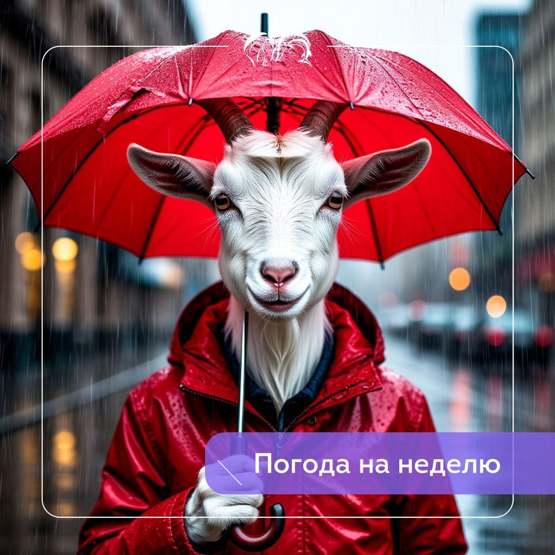 🖤🖤🖤🖤🖤🖤 ❄️Сезон дождей и листопадов близится к завершению, и через несколько недель зима официально вступит в свои права. Пока же посмотрим, какие сюрпризы преподнесет нам погода на следующей неделе. 🌧По прогнозам синоптиков, средняя температура составит +4 градуса днем и +2 градуса ночью. Дождь будет идти почти всю неделю. ☂️Совет от Козы: держите зонт наготове и не забывайте утепляться! ✅Подписаться на Козу и Стерлядь